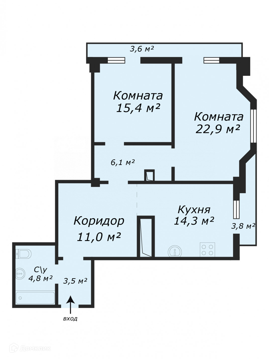 Общая площадь 85.4 м2