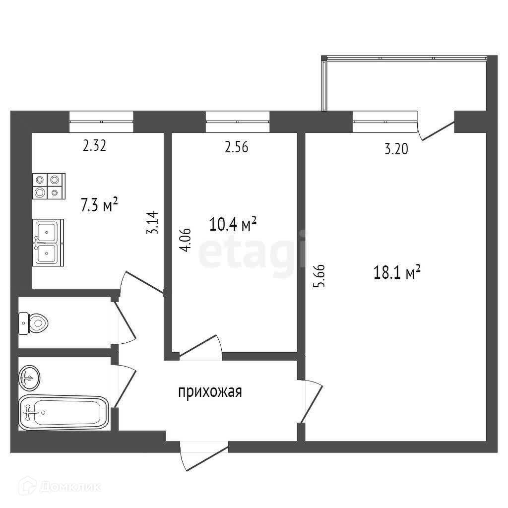 Общая площадь 45.6 м2