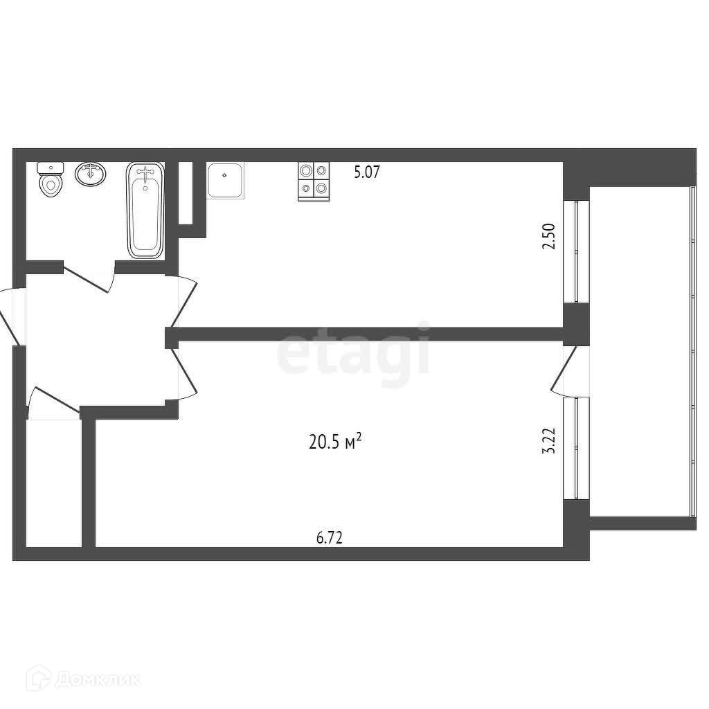 Балкон, лоджия 1 балкон