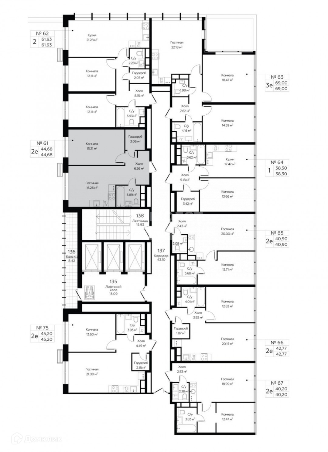 Общая площадь 44 м2