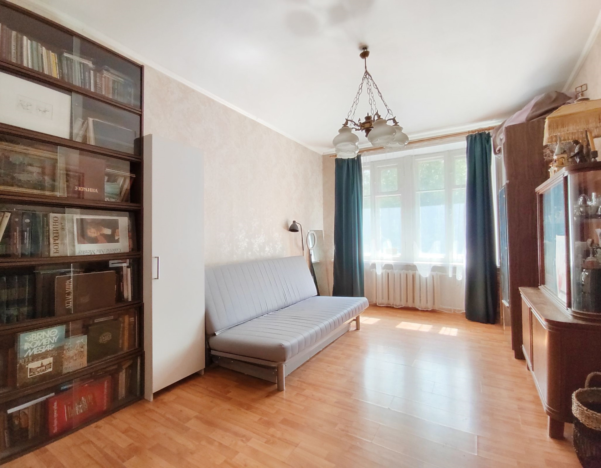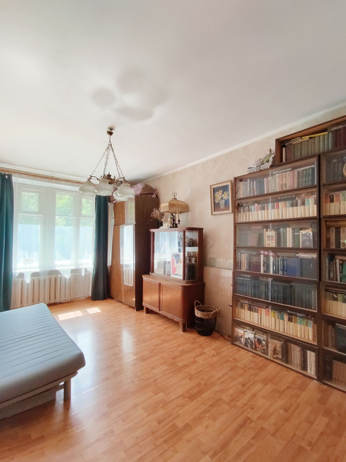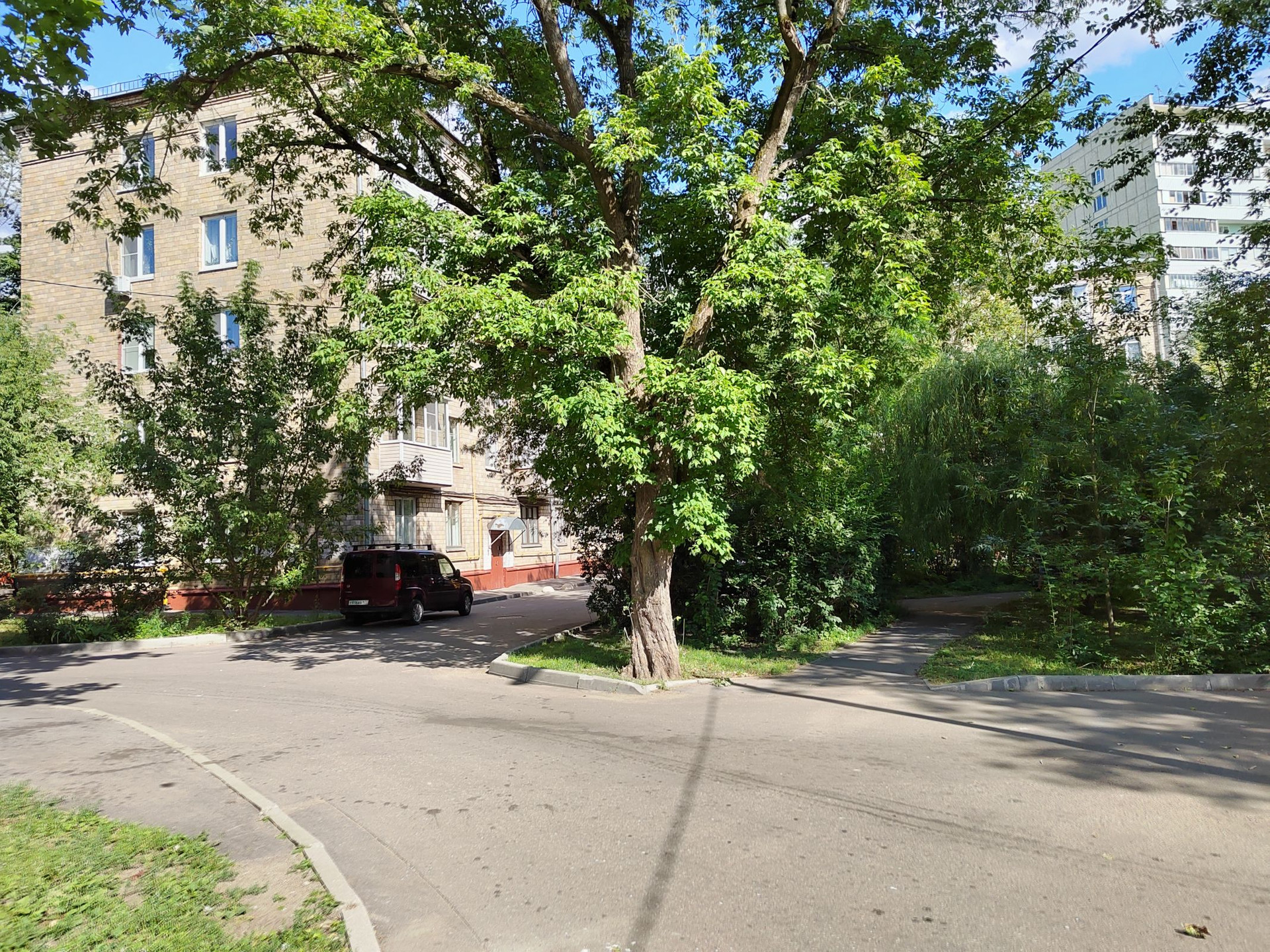 Высокий 1-й этаж, окна на две стороны: у 2-х комнат – в красивый зеленый двор, у 3-й комнаты и кухни – на тихую малопроездную улицу.