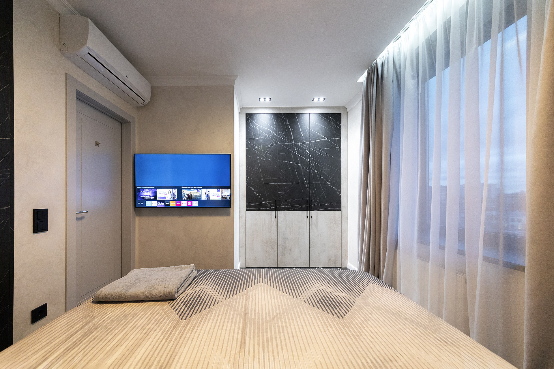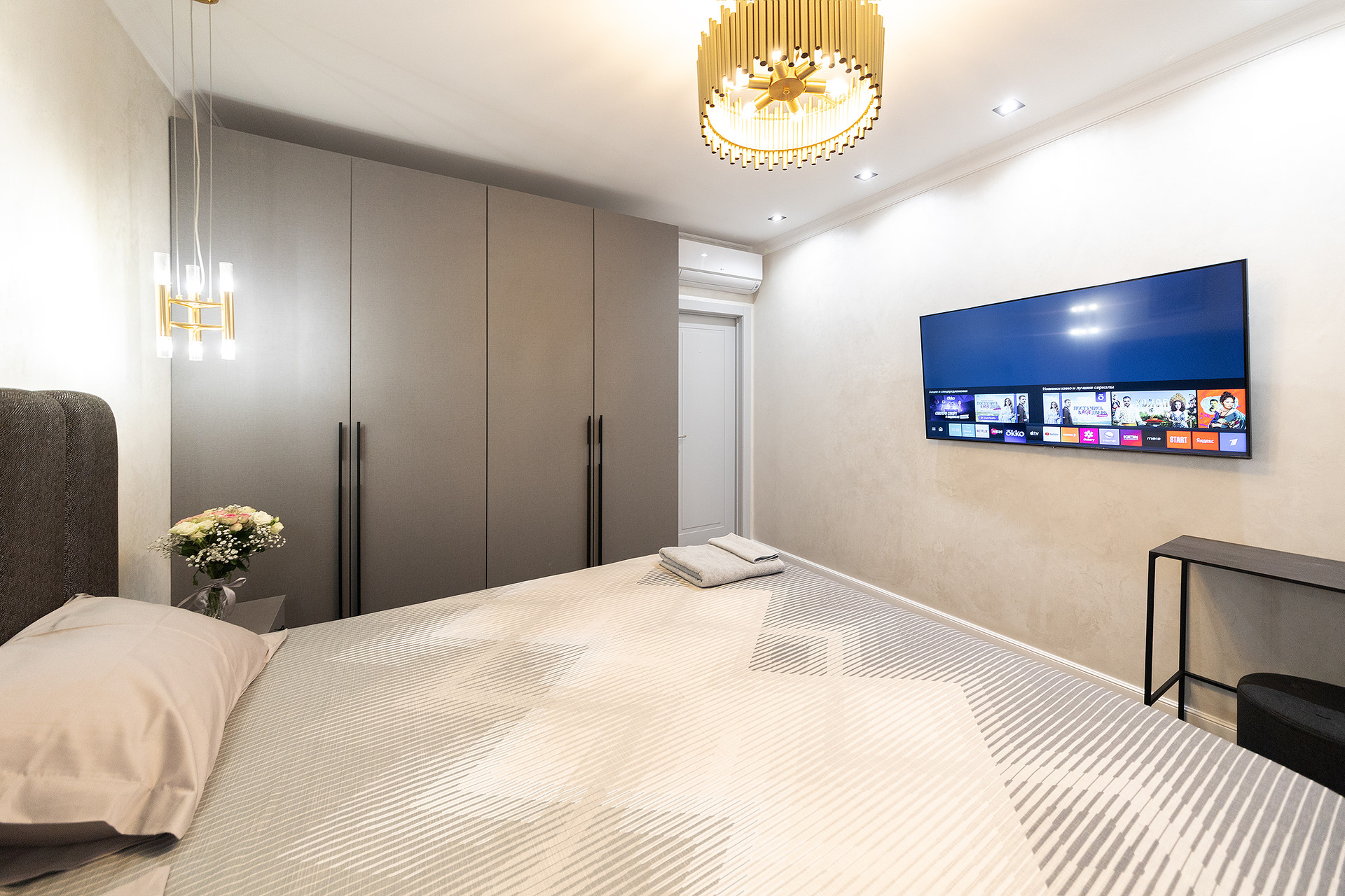 Ремонт выполнен по индивидуальному дизайн-проекту в лаконичных светлых тонах, с авторским декором. Вся мебель и техника привезены под заказ из Европы.