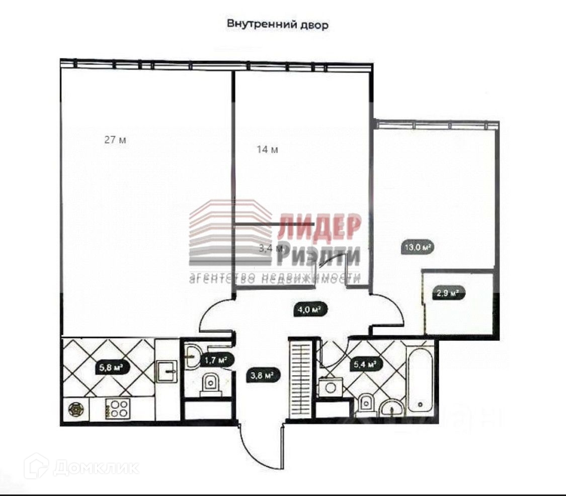 Площадь кухни 5.8 м2