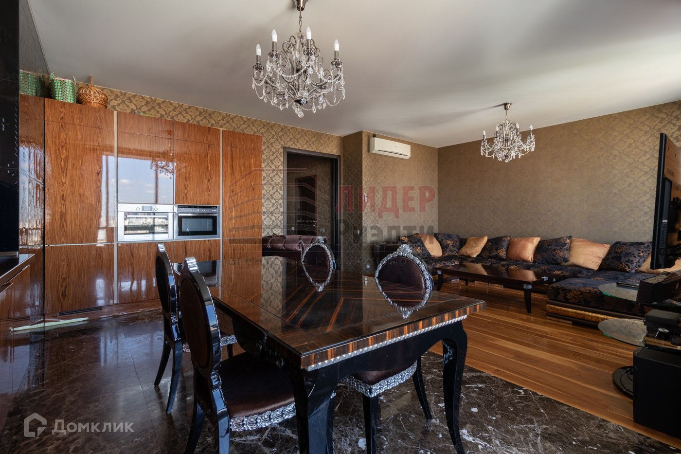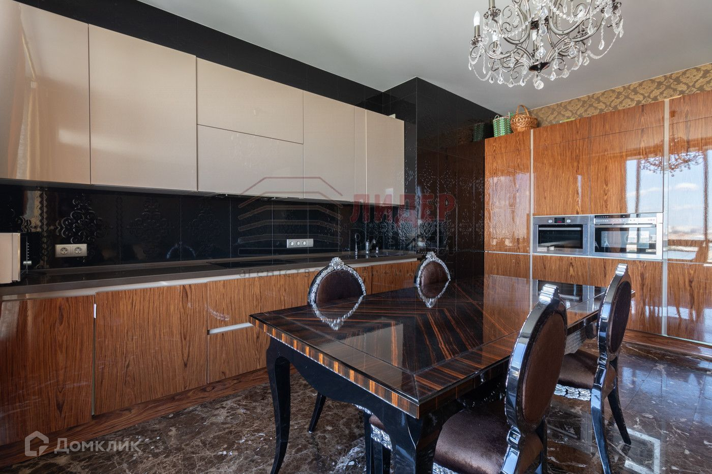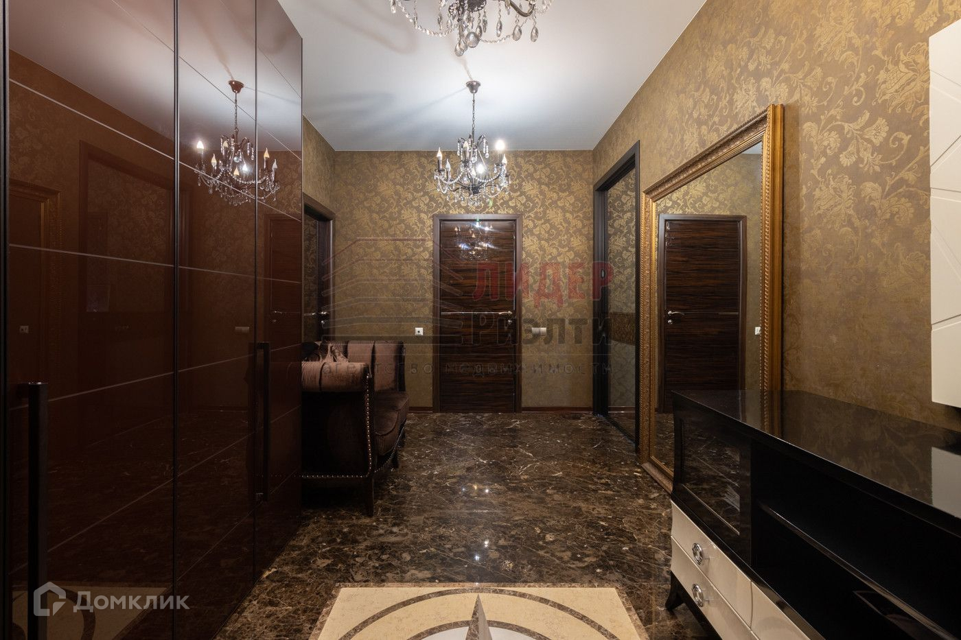 В квартире сделан дорогой ремонт — на полу паркет, плитка мрамор Имперадор, итальянские двери LONGHI. Интерьер выполнен по оригинальному дизайн проекту, мебель итальянских производителей.