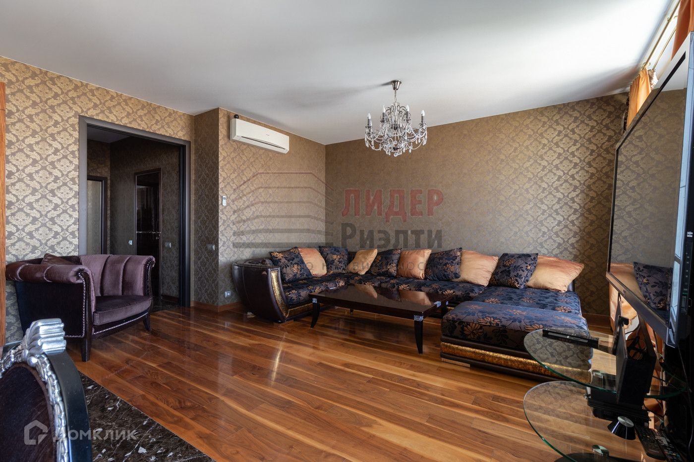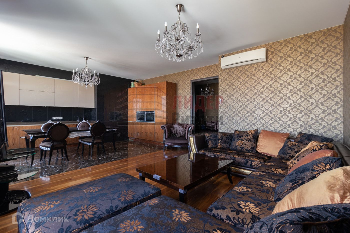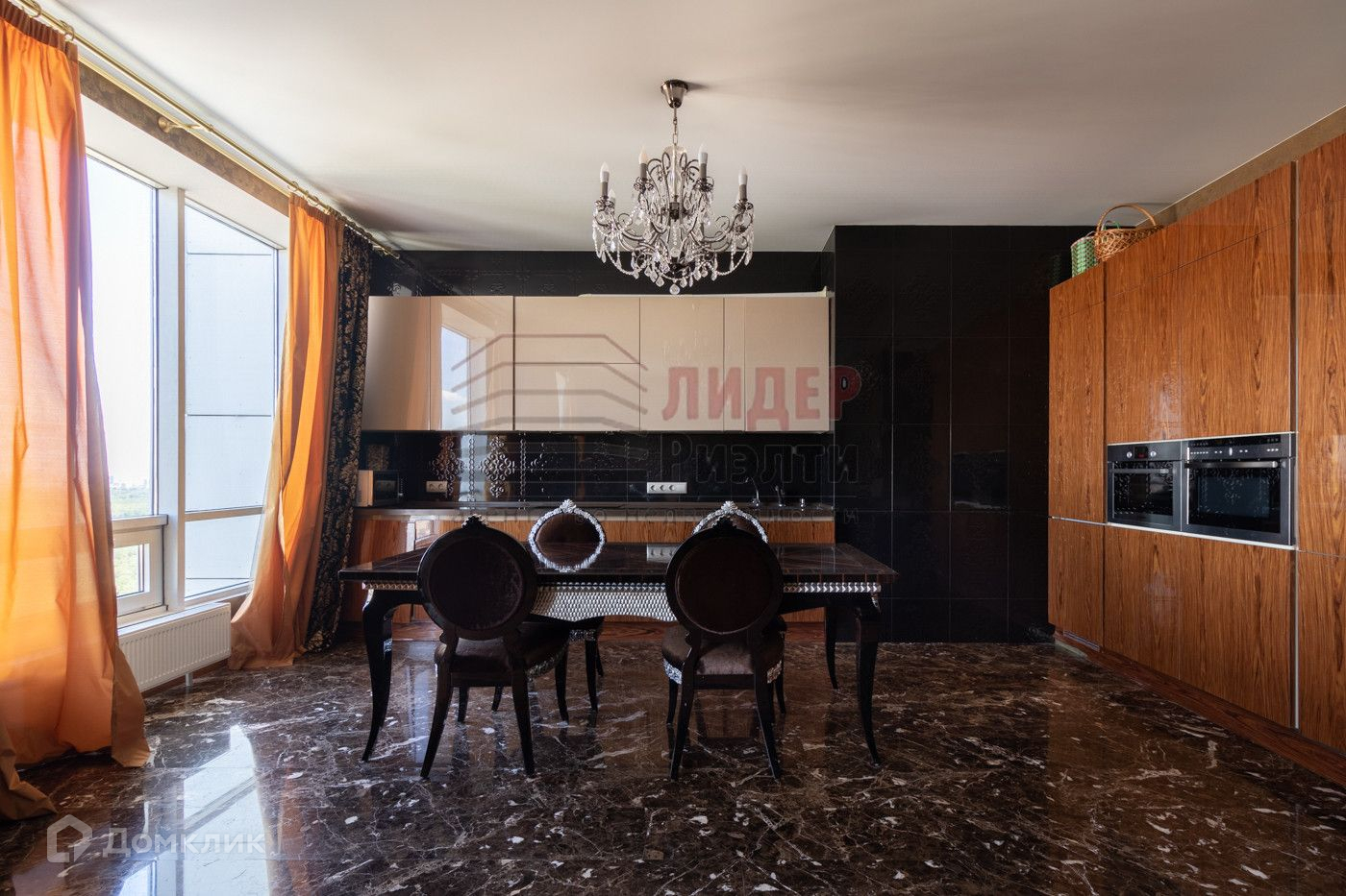 В квартире сделан дорогой ремонт — на полу паркет, плитка мрамор Имперадор, итальянские двери LONGHI. Интерьер выполнен по оригинальному дизайн проекту, мебель итальянских производителей.