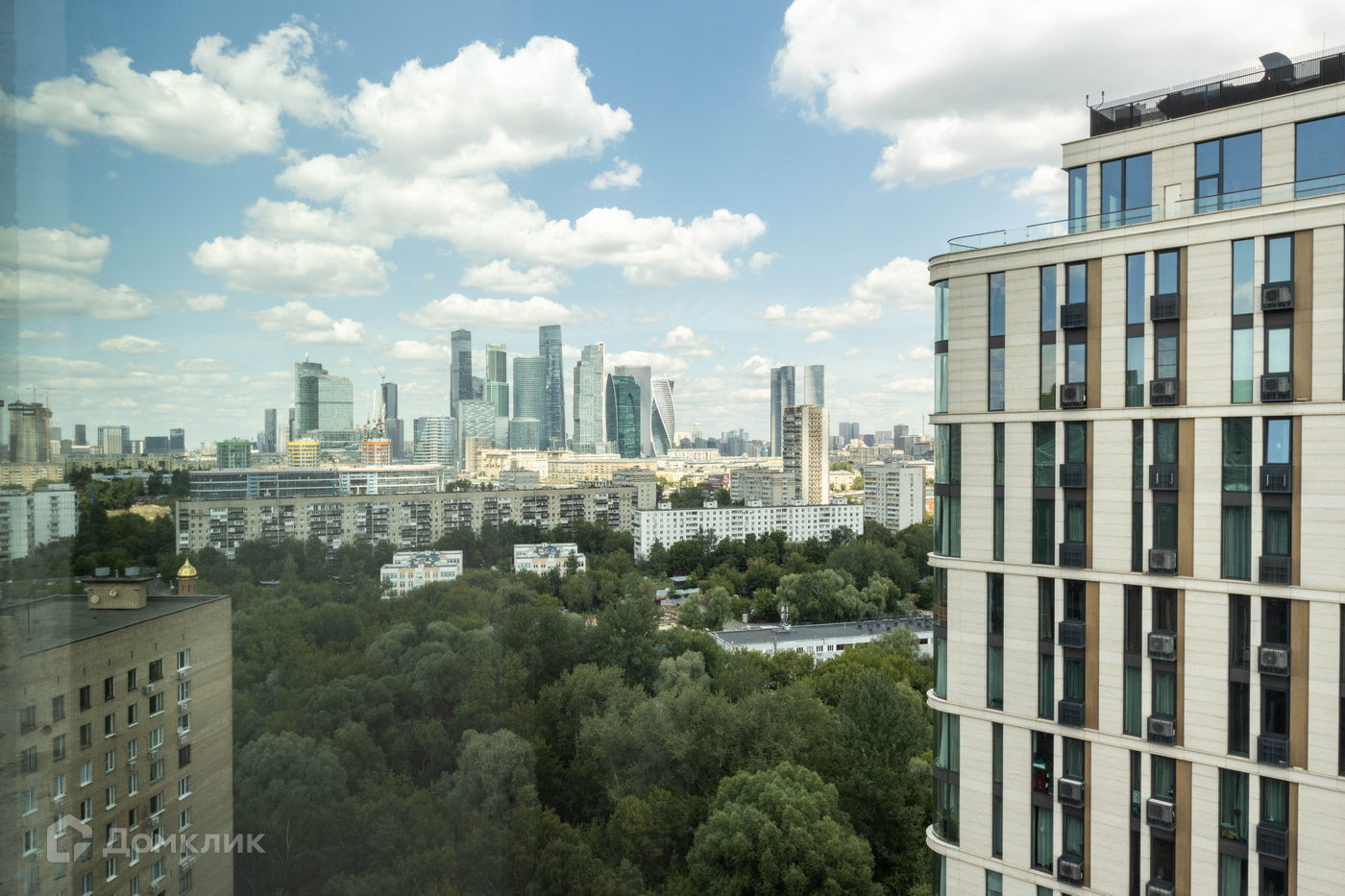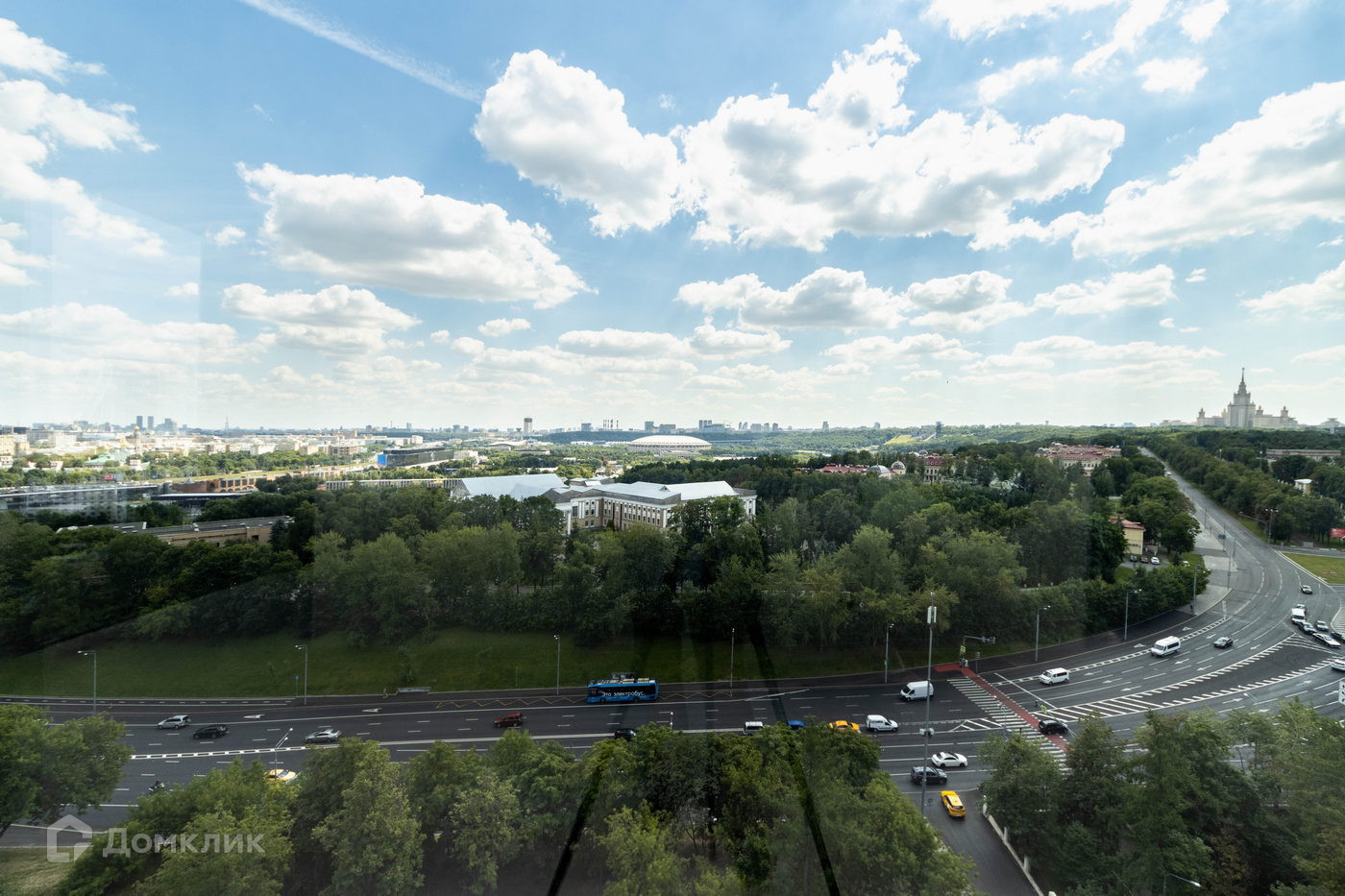 Вид на Москва-реку, Лужники, Воробьевы горы, МГУ и Москва Сити.