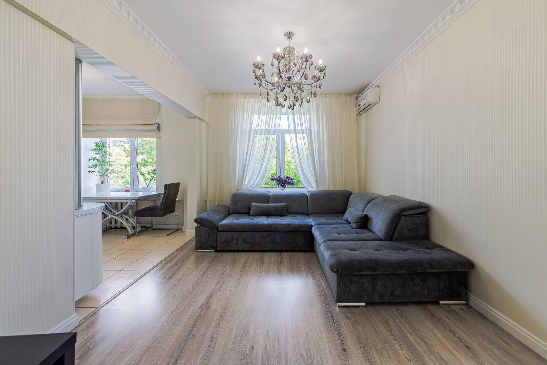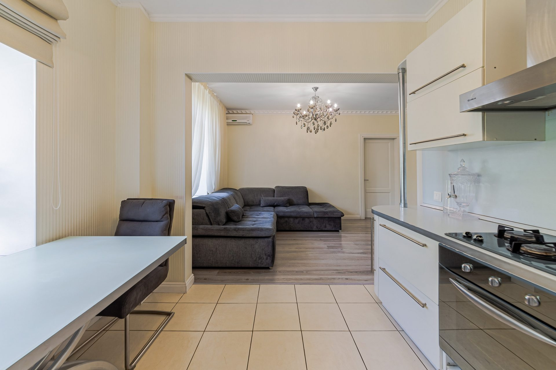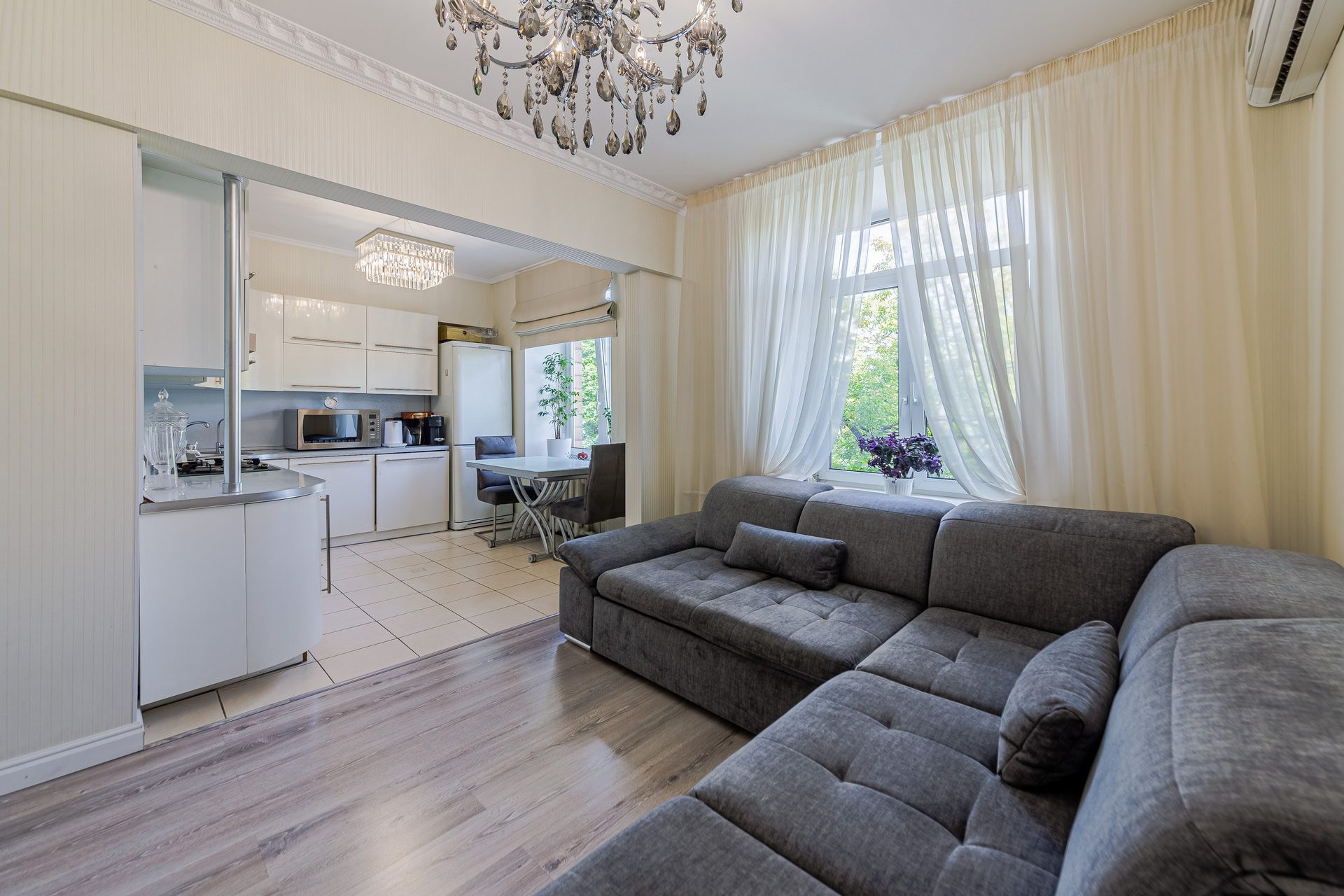 Интерьер выдержан в чертах нейтрального современного стиля, в оформлении преобладают спокойные и элегантные цветовые гаммы. Установлена система кондиционирования воздуха. В квартире выполнен качественный евроремонт, поэтому можно сразу заехать и жить. Просторные и светлые комнаты с окнами, выходящими как на улицу, так и во двор, создают уютную атмосферу.