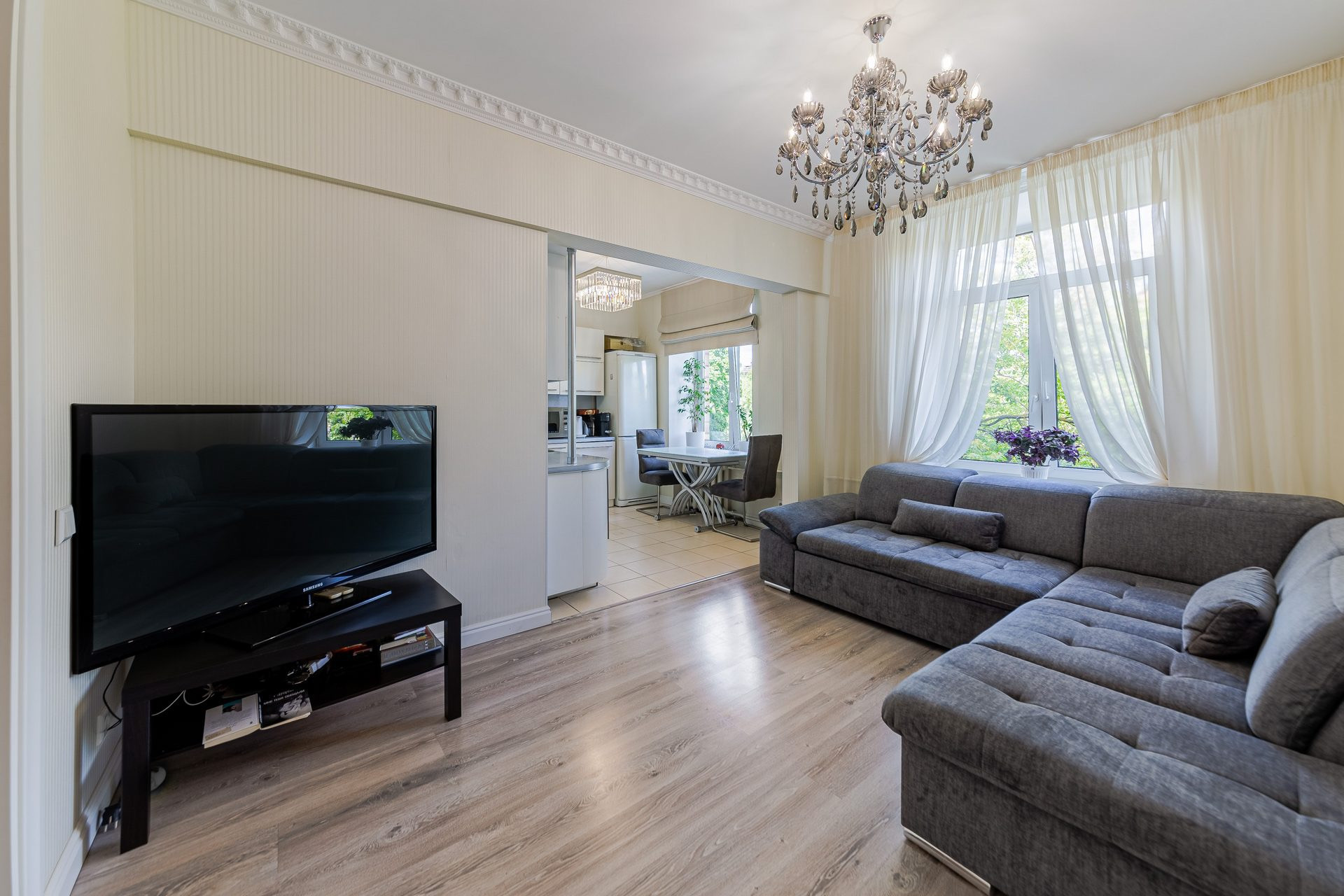 2 дополнительные спальни , просторный санузел с ванной. Квартира полностью меблирована и оборудована всей необходимой техникой, поэтому можно сразу начать пользоваться всем удобствами.