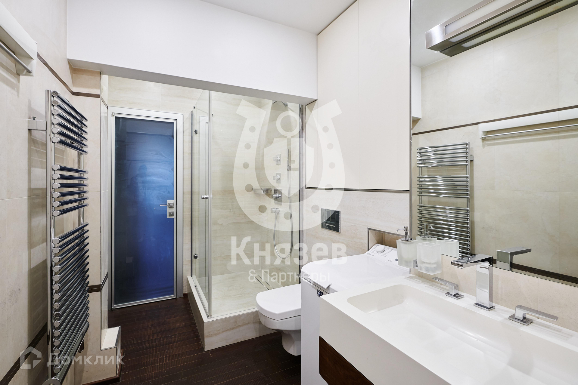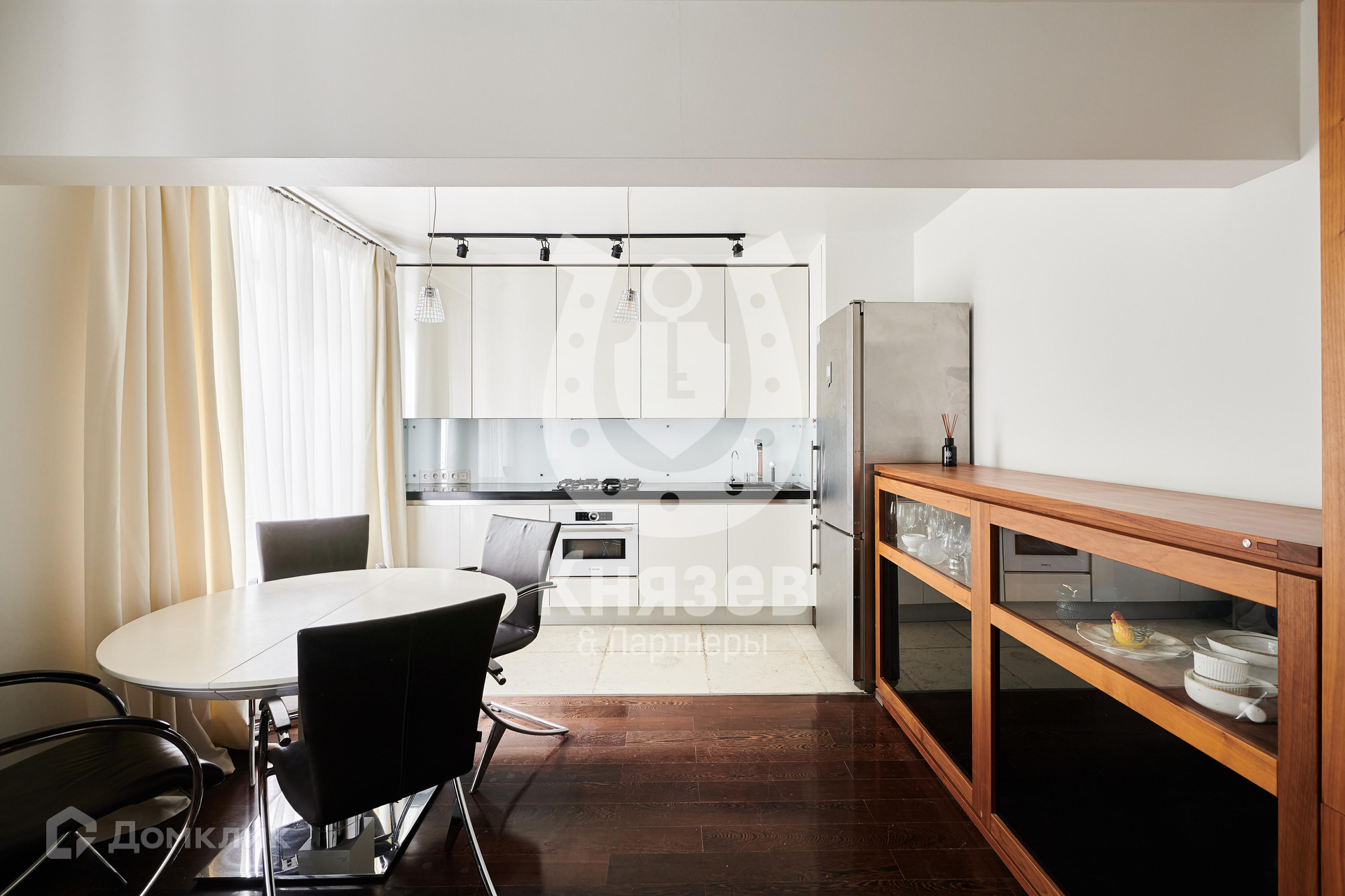 Уникальный авторский дизайн выполнен в современном стиле в светлых тонах. В отделке использованы только натуральные материалы, пол массив венге.