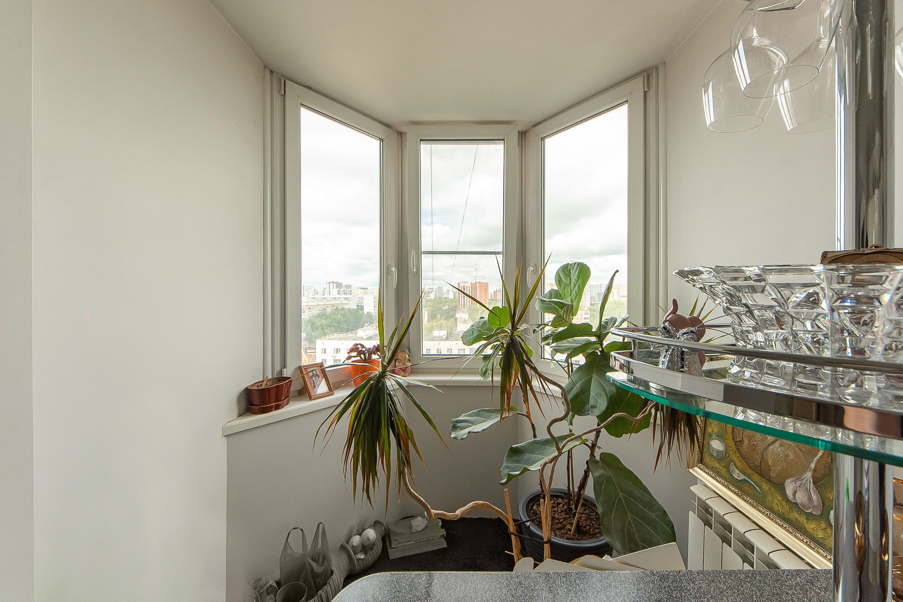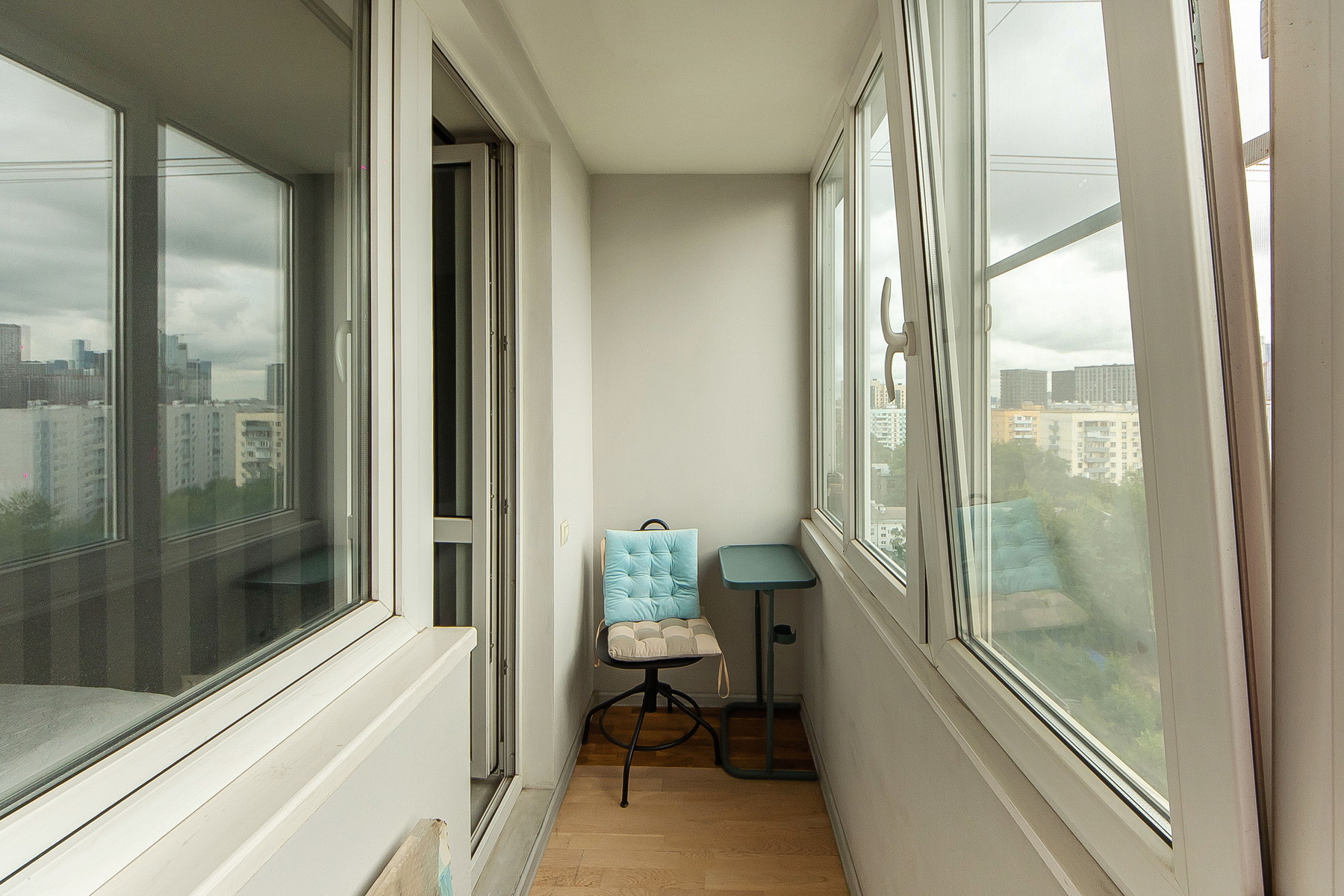 Окна квартиры выходят на две стороны с очень красивыми видами на Москву, с утренним восходом солнца ,а с другой стороны, закатами.