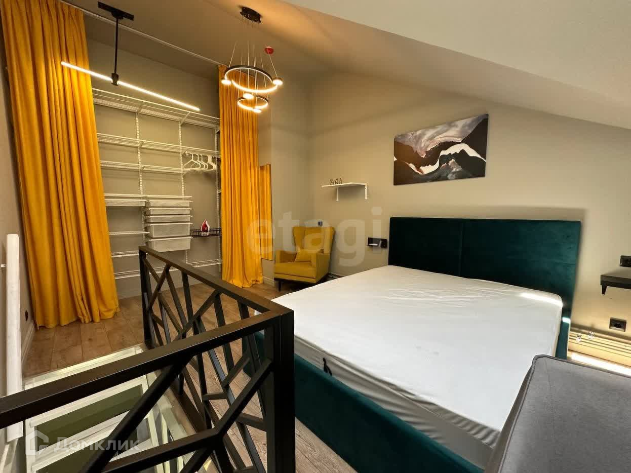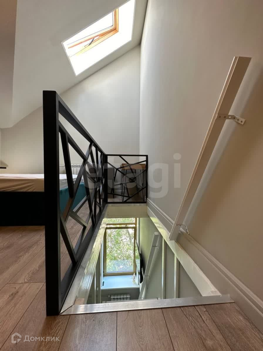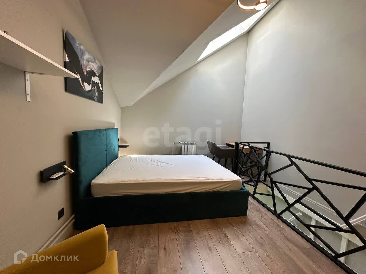 Следом поднимаемся на второй этаж, где вас ждёт роскошная кровать, неприлично большой гардероб во всю стену, письменный стол для учёбы или работы и ещё две классные фишки. Начнём с того, что мансардное окно открывается и к нему есть дистанционный пульт управления. А теперь, гвоздь нашей программы его величество проектор!! Уютные вечера под любимый сериал обеспечены. Можно использовать классический браузер, либо делать проекцию прямо с телефона тут как вам удобно. А высота потолков на втором этаже ещё выше 3,5 метра, так что, наслаждайтесь.