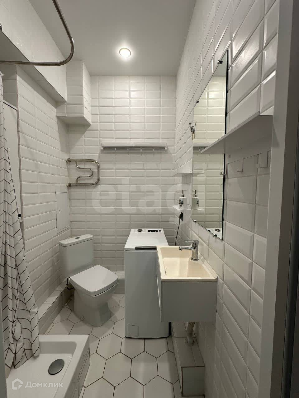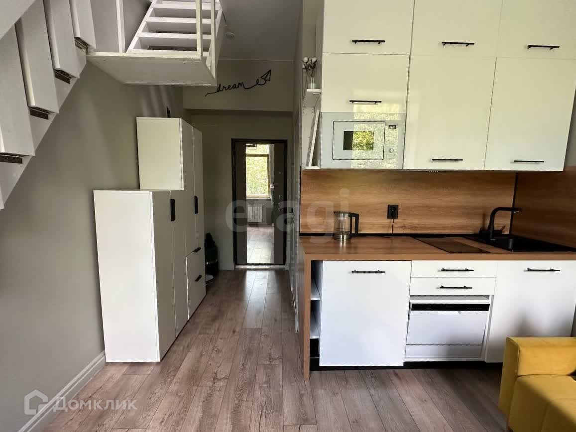 На первом этаже вас ждёт уютная кухня-гостиная со всей необходимой техникой: плита, холодильник, микроволновка, посудомойка, телевизор и электрический чайник. Стол-трансформер легко может подстроится под режим вечеринки, прилично увеличившись в размерах, а диван раскладывается в два счёта, если нужно приютить гостей. Мы не забыли про шкафы и комод, которые вы найдёте в пространстве рядом с кухней. В ванной комнате всё по классике душ, стиралка, сушилка и проч. Ах да, высота потолка на первом этаже 3 метра, вам понравится.