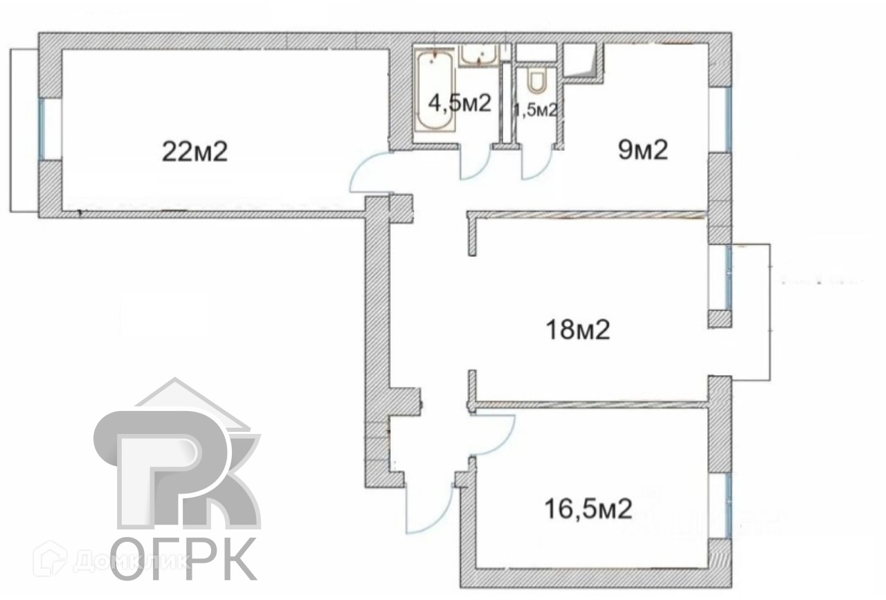 Жилая площадь 57.6 м2