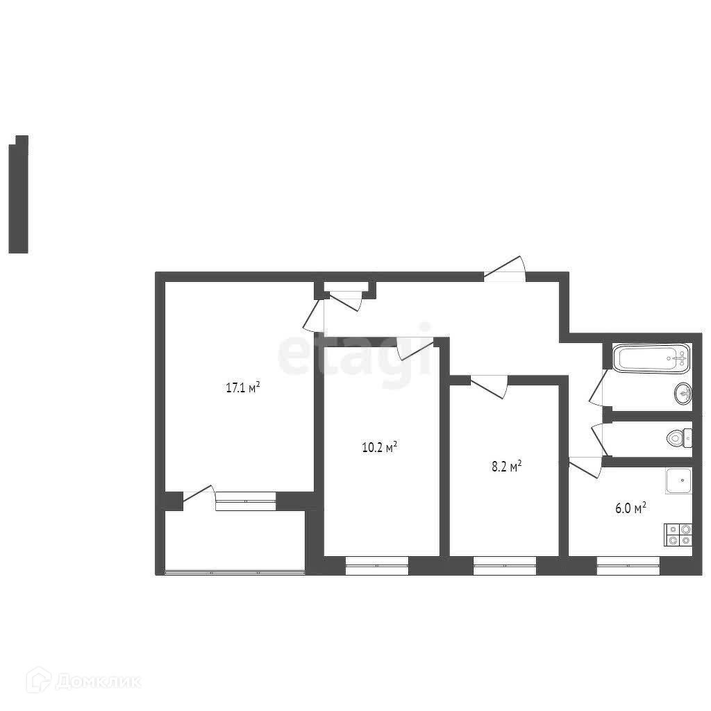 Общая площадь 57.9 м2