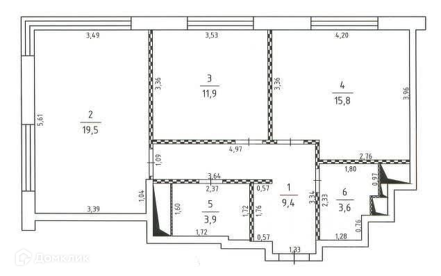 Общая площадь 64 м2