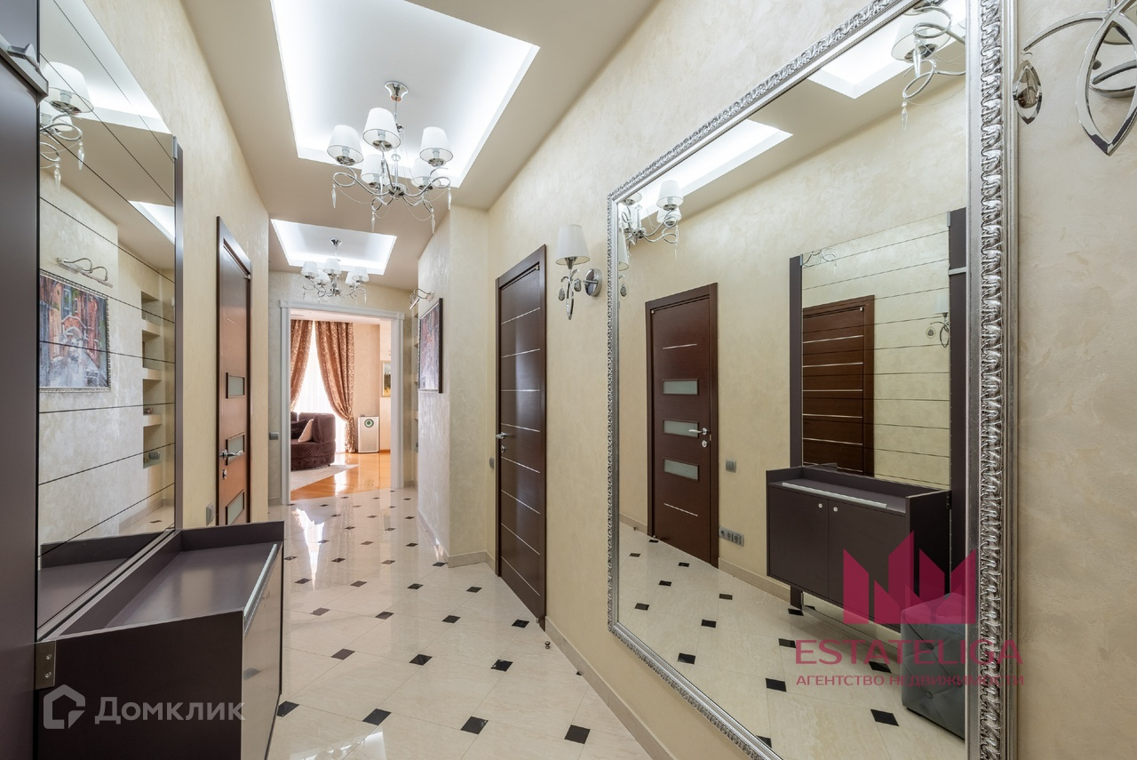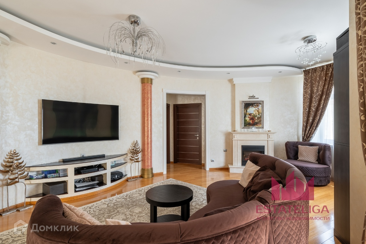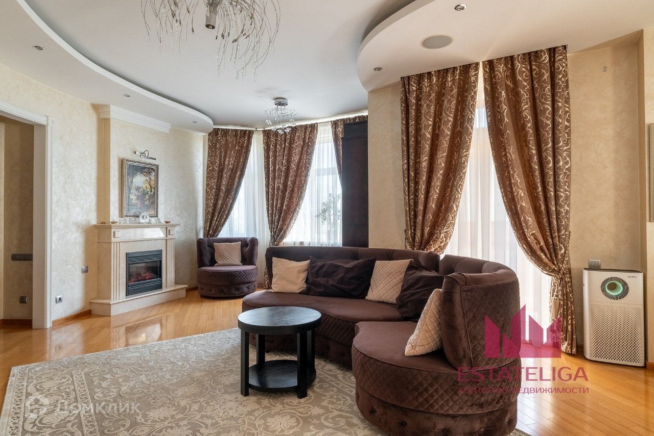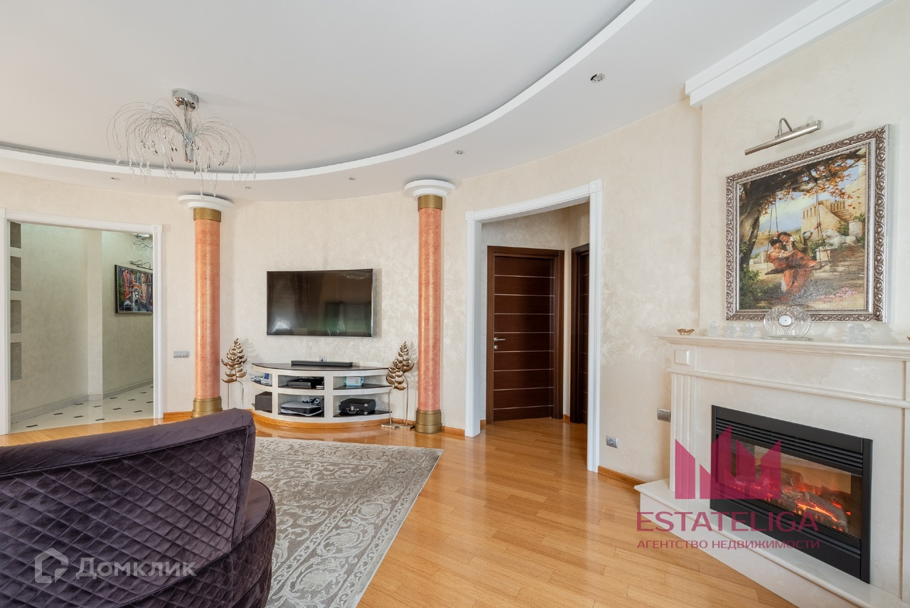 Квартира отличается удобной планировкой и включает в себя две просторные спальни, большую кухню, совмещенную с гостиной, два санузла и вместительную гардеробную. В гостиной, оформленной в современном стиле, установлены шесть окон, которые открывают захватывающий вид на МГУ и часть окон во двор.