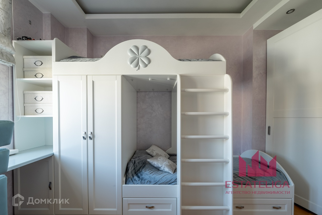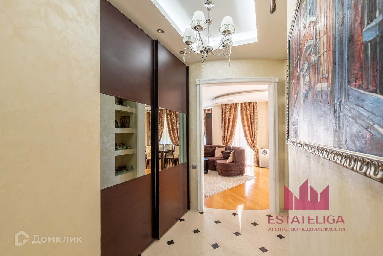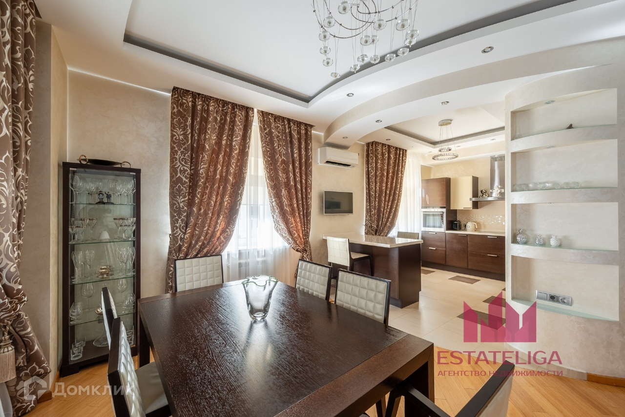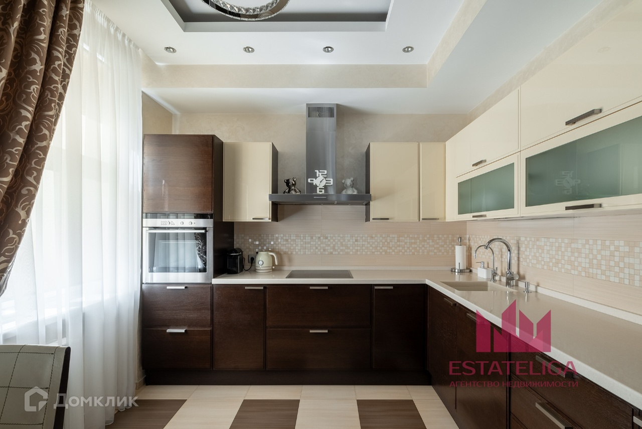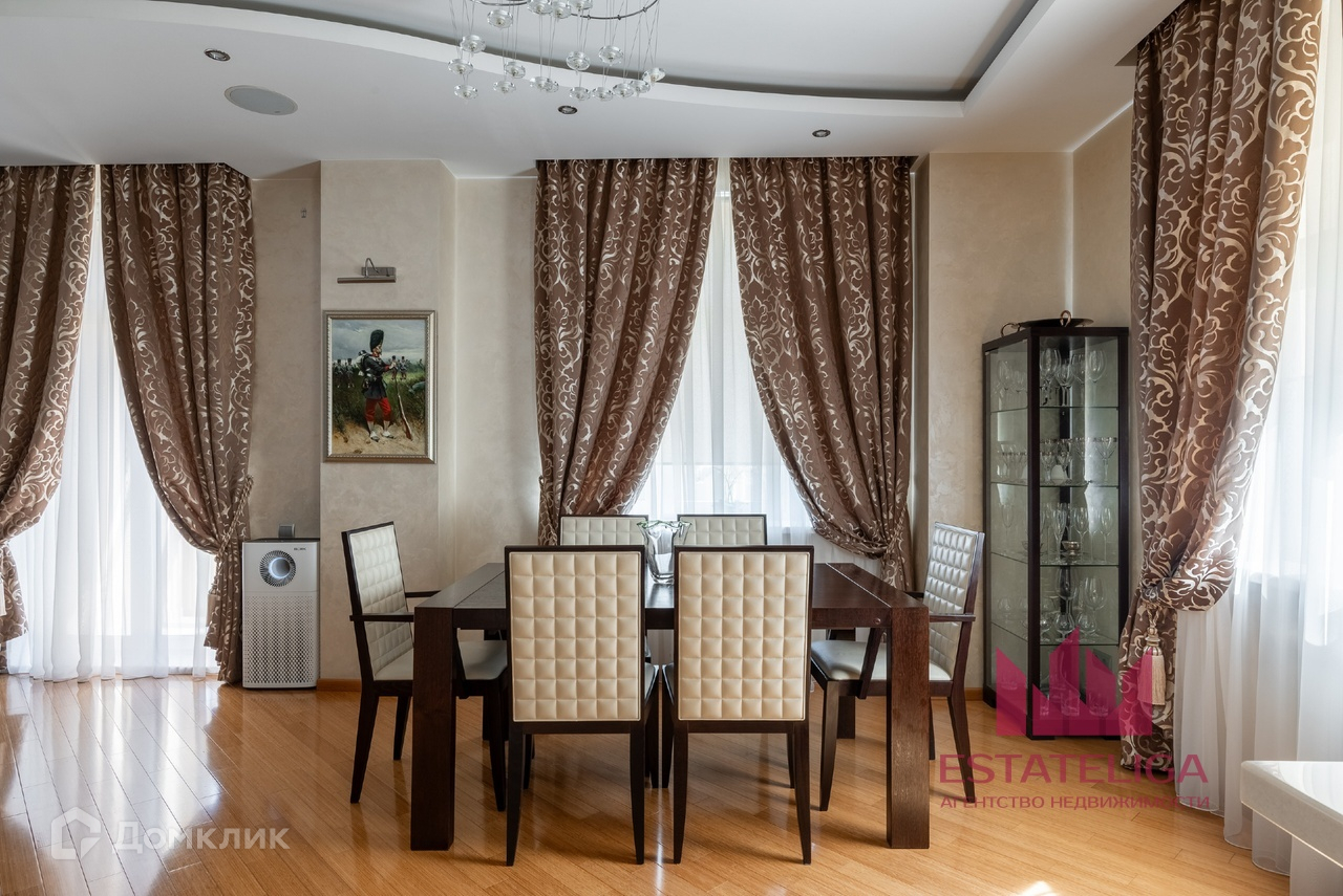 Квартира отличается удобной планировкой и включает в себя две просторные спальни, большую кухню, совмещенную с гостиной, два санузла и вместительную гардеробную. В гостиной, оформленной в современном стиле, установлены шесть окон, которые открывают захватывающий вид на МГУ и часть окон во двор.