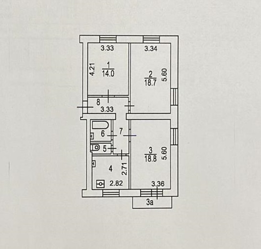 - Функциональная планировка включает в себя: прихожую, кухню (7.7 кв.м), три раздельные комнаты (18.8-18.7-14 кв.м.), раздельный санузел и балкон.