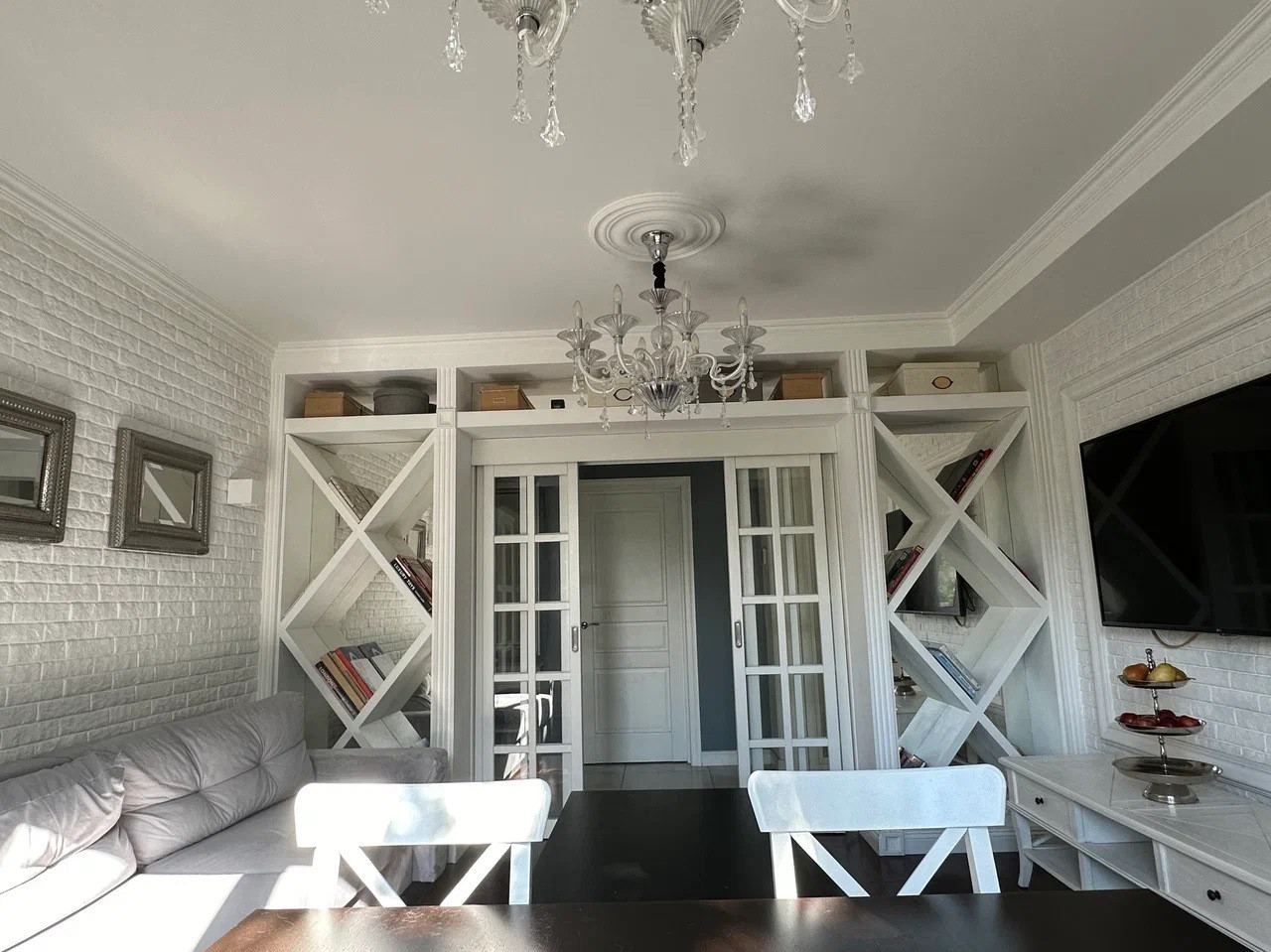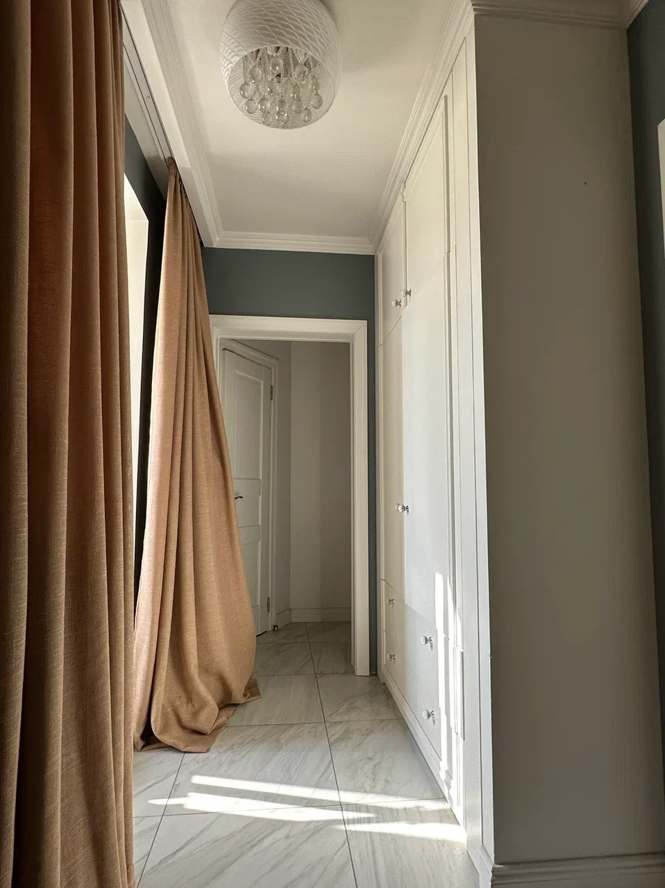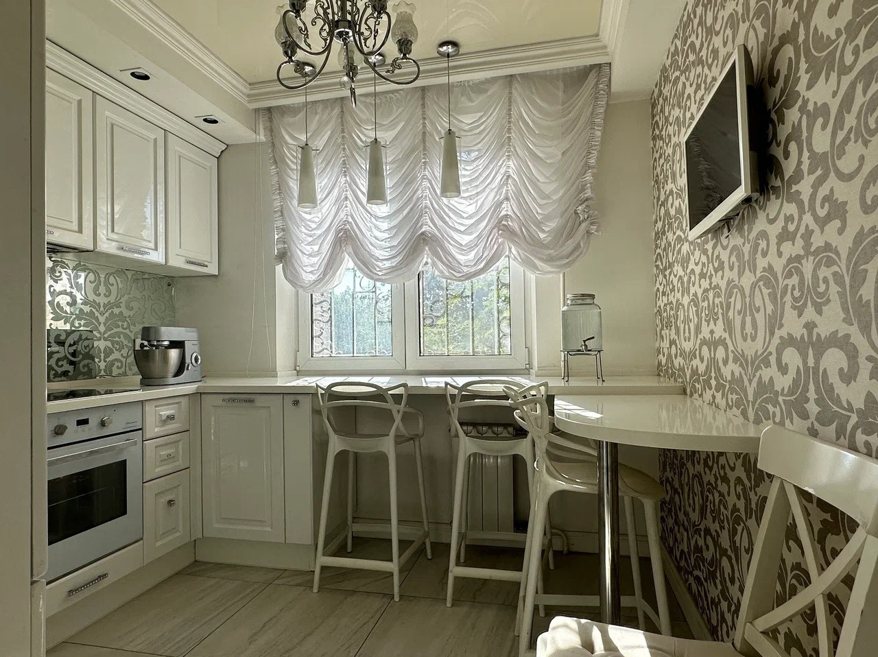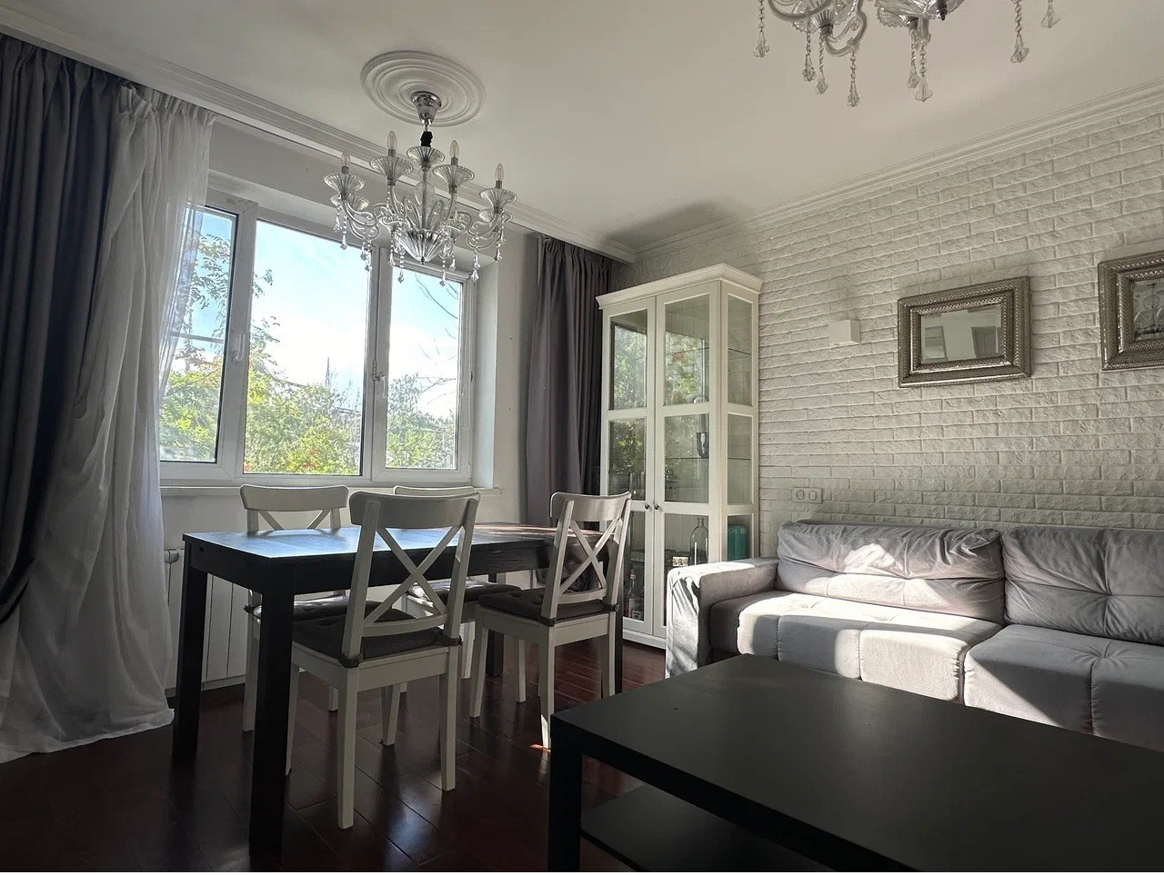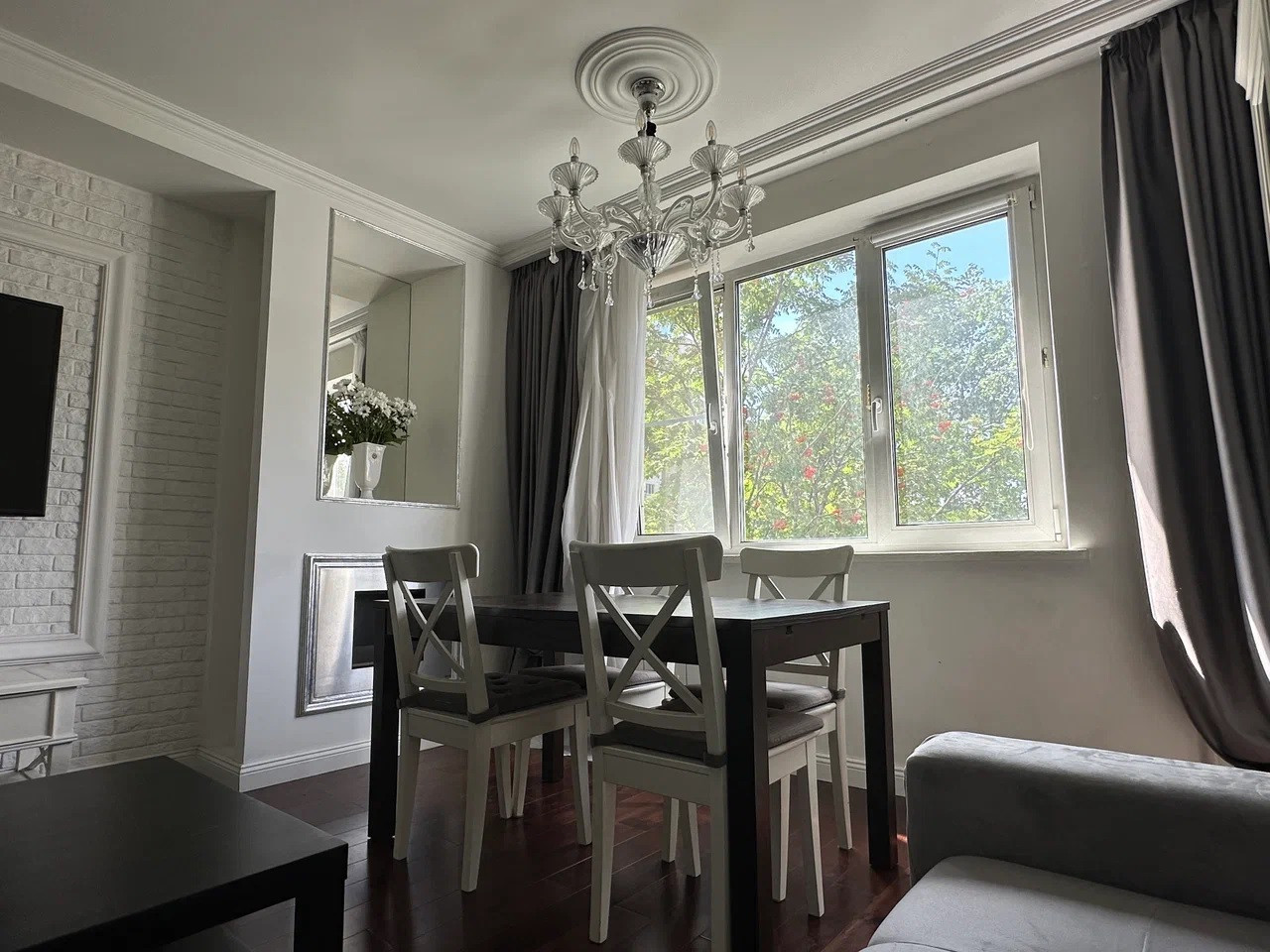 В квартире выполнен дизайнерский ремонт, что придаёт ей особый шарм и уют. Пространство максимально продумано, гостиная,  три изолированных спальни,  мини кабинет,  два полноценных санузла, что является огромным плюсом для большой семьи.