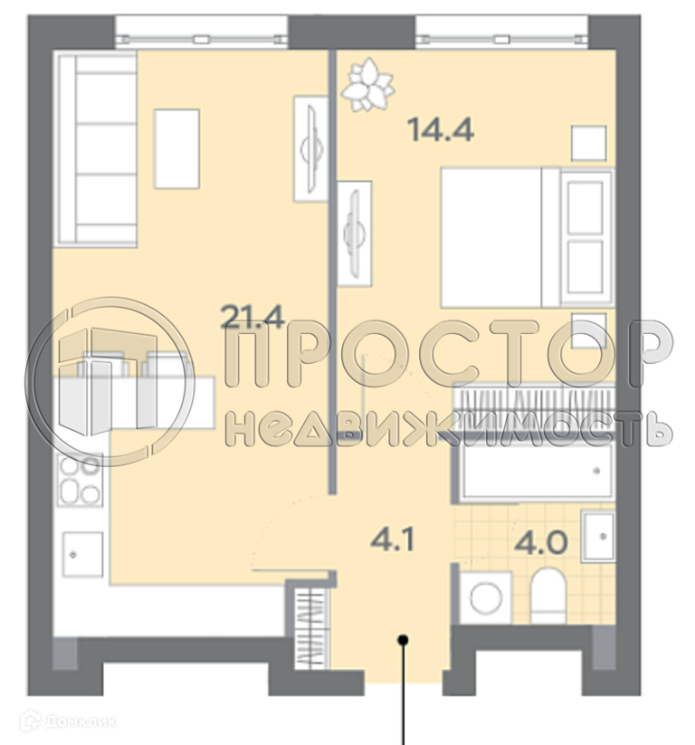 Жилая площадь 14.4 м2