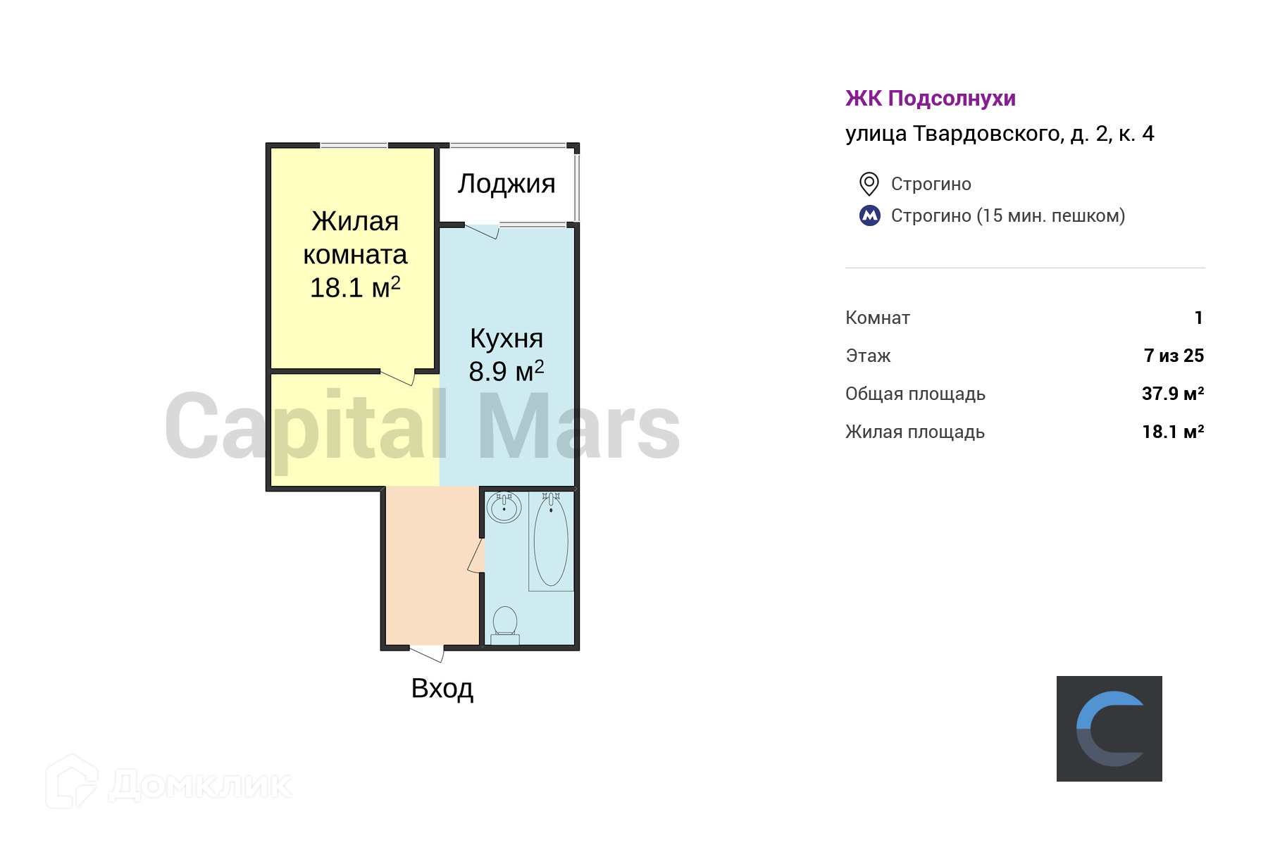 Общая площадь 37.9 м2