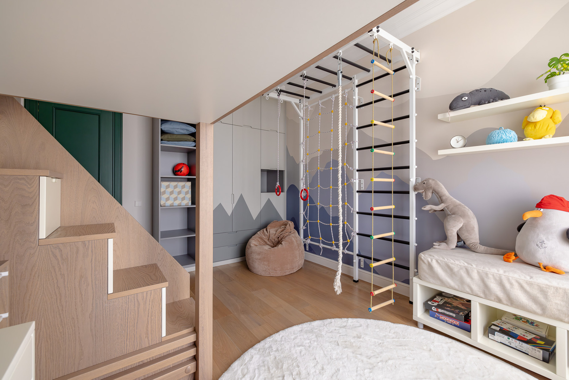 Внутри предусмотрены просторные зоны с мягкой мебелью для отдыха и встречи гостей. Помещения для хранения колясок и крупногабаритных предметов, санузлы и места для мойки лап домашних животных.