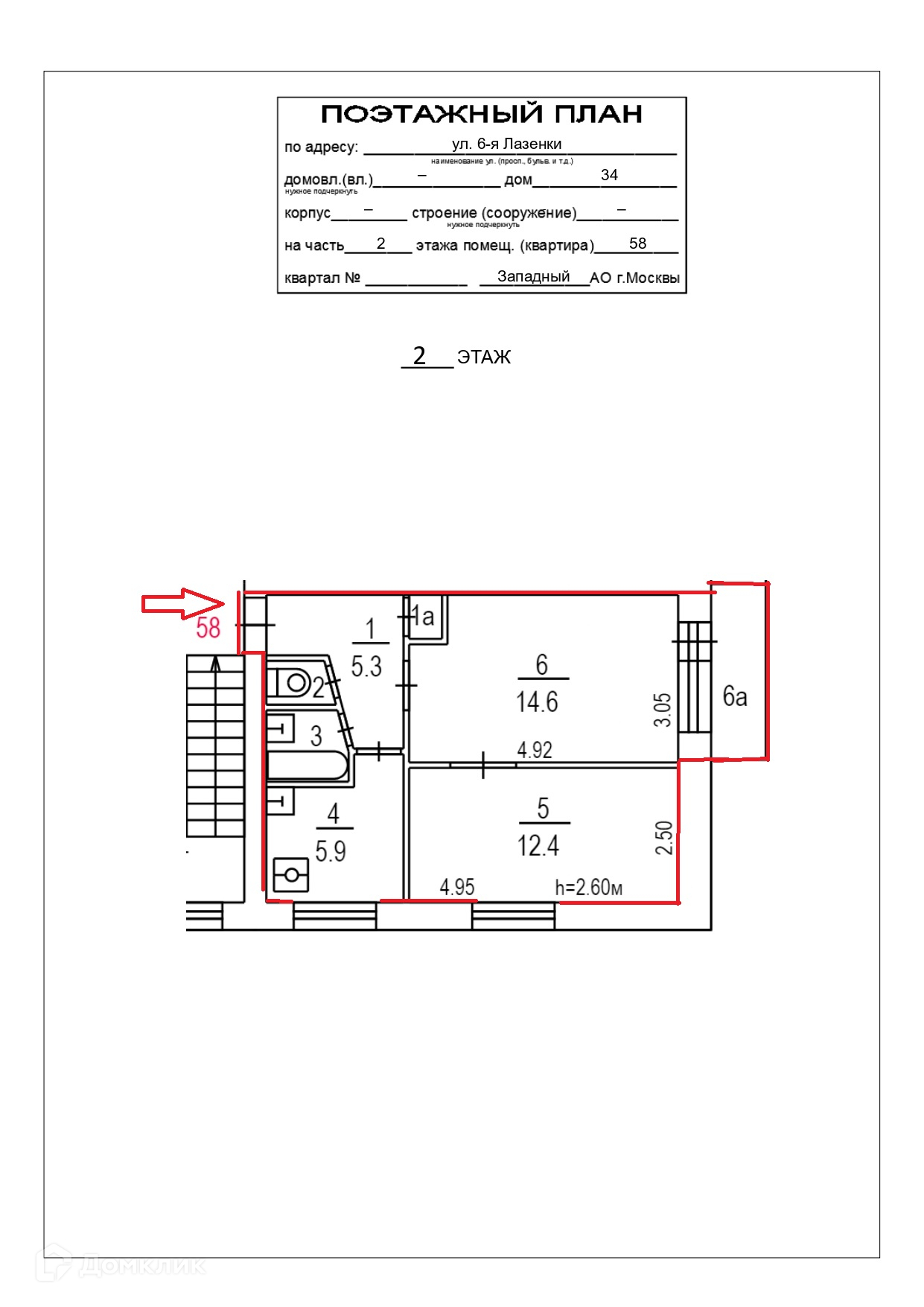 2-комнатная квартира, 41.5 м2, этаж 2 / 5, на продажу в Москве, 6-я улица Лазенки, 34
