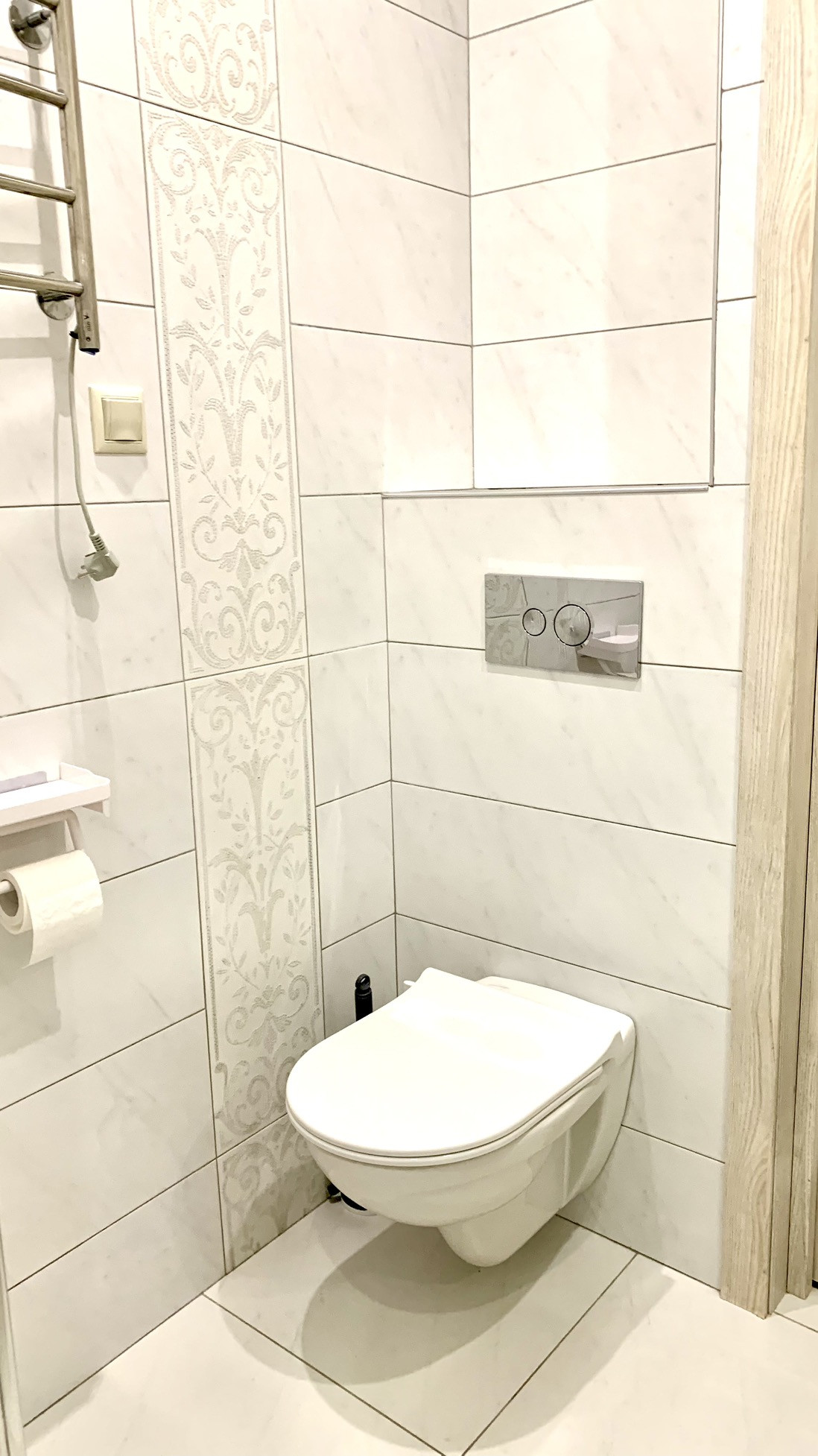 Оборудована большая гардеробная комната. Совмещенный санузел с душевой кабиной. Выделена зона для стиральной машины.  Кондиционер. Удобное расположение розеток и разводка электрики по дизайн-проекту.