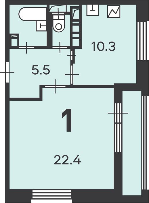 Жилая площадь 22.4 м2