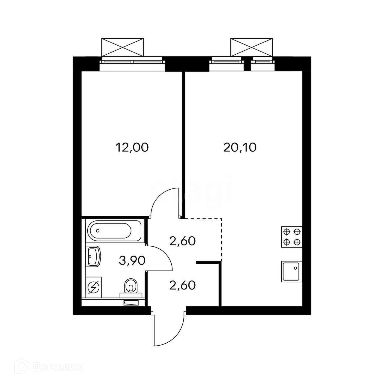 Общая площадь 41 м2