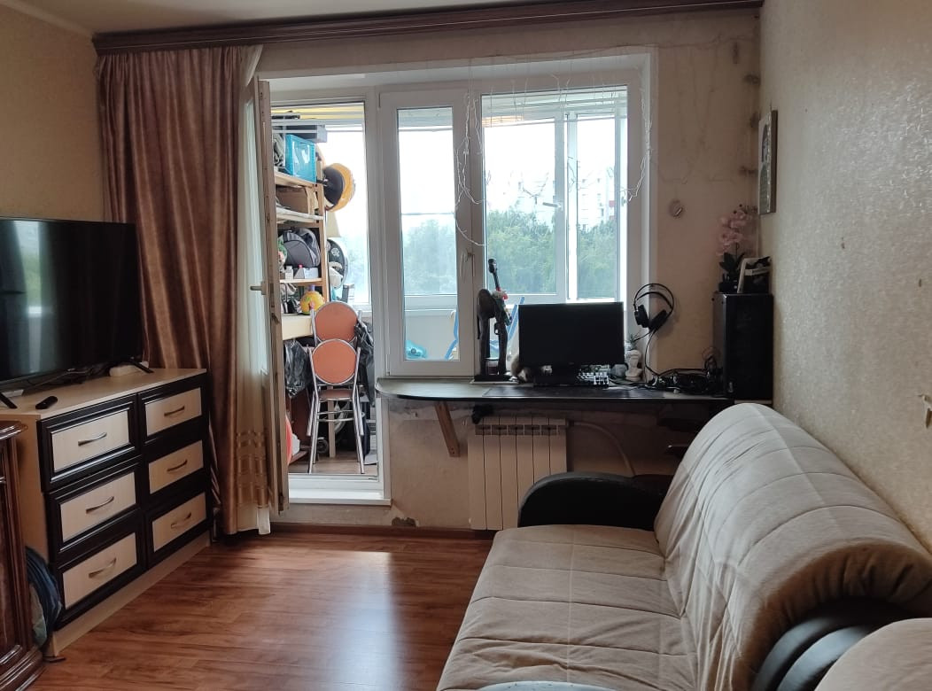 Общая площадь квартиры составляет 42,6 кв. м, жилая площадь 27,3 кв. м, площадь кухни 8 кв. м. Квартира находится на 7 этаже 9-этажного панельного дома. Санузел совмещен. Окна выходят на зеленый двор, поэтому в квартире всегда тихо и уютно. Есть просторная лоджия, где можно наслаждаться утренним кофе или разместить цветы.