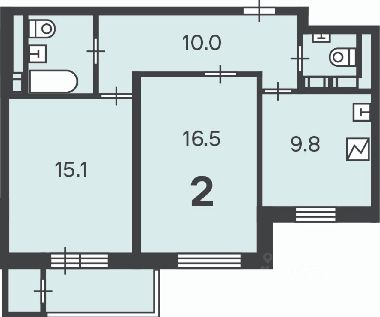 Количество комнат 2