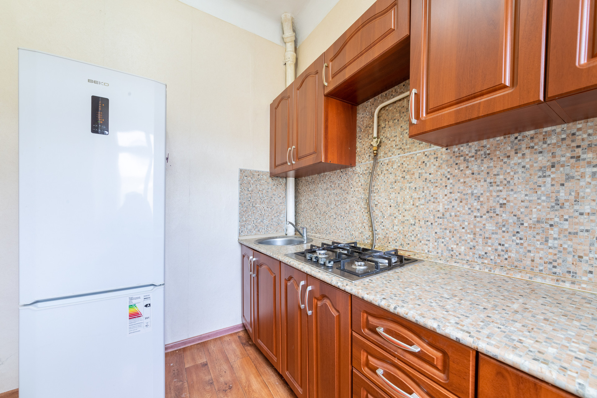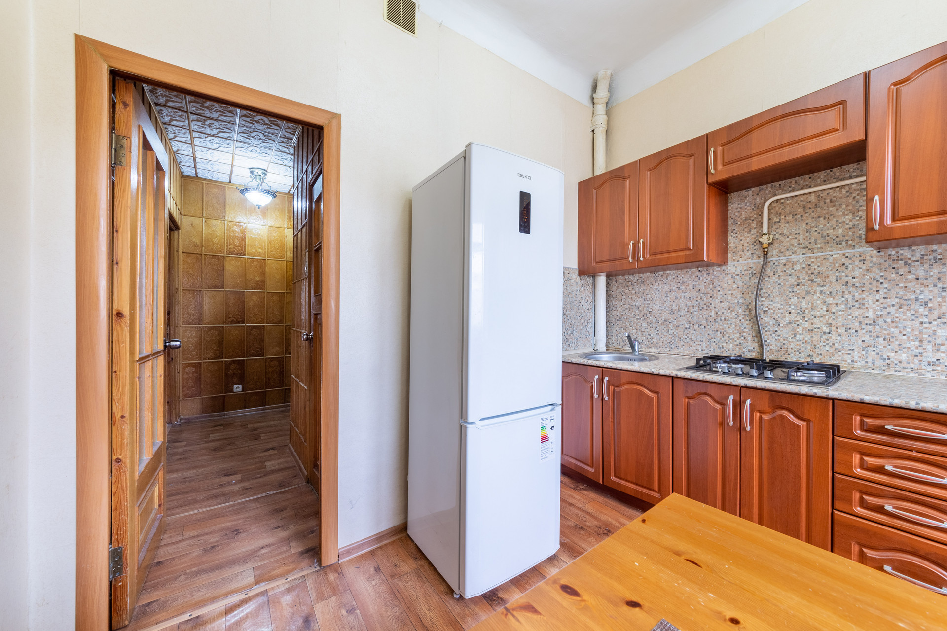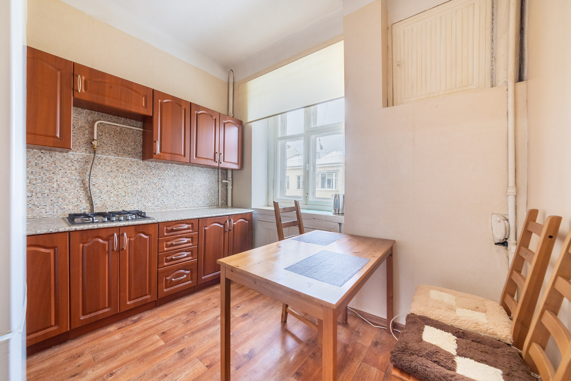 Отличная планировка самой квартиры. Высокие потолки - 3 метра. Общая площадь составляет – 54,1 м2, раздельные жилые комната – 18м2 и 17м2, кухня – 8,5 м2, коридор – 5,1 м2, санузел совмещён – 3,5м2 Квартира с большим застекленным балконом – 3,5 м2.