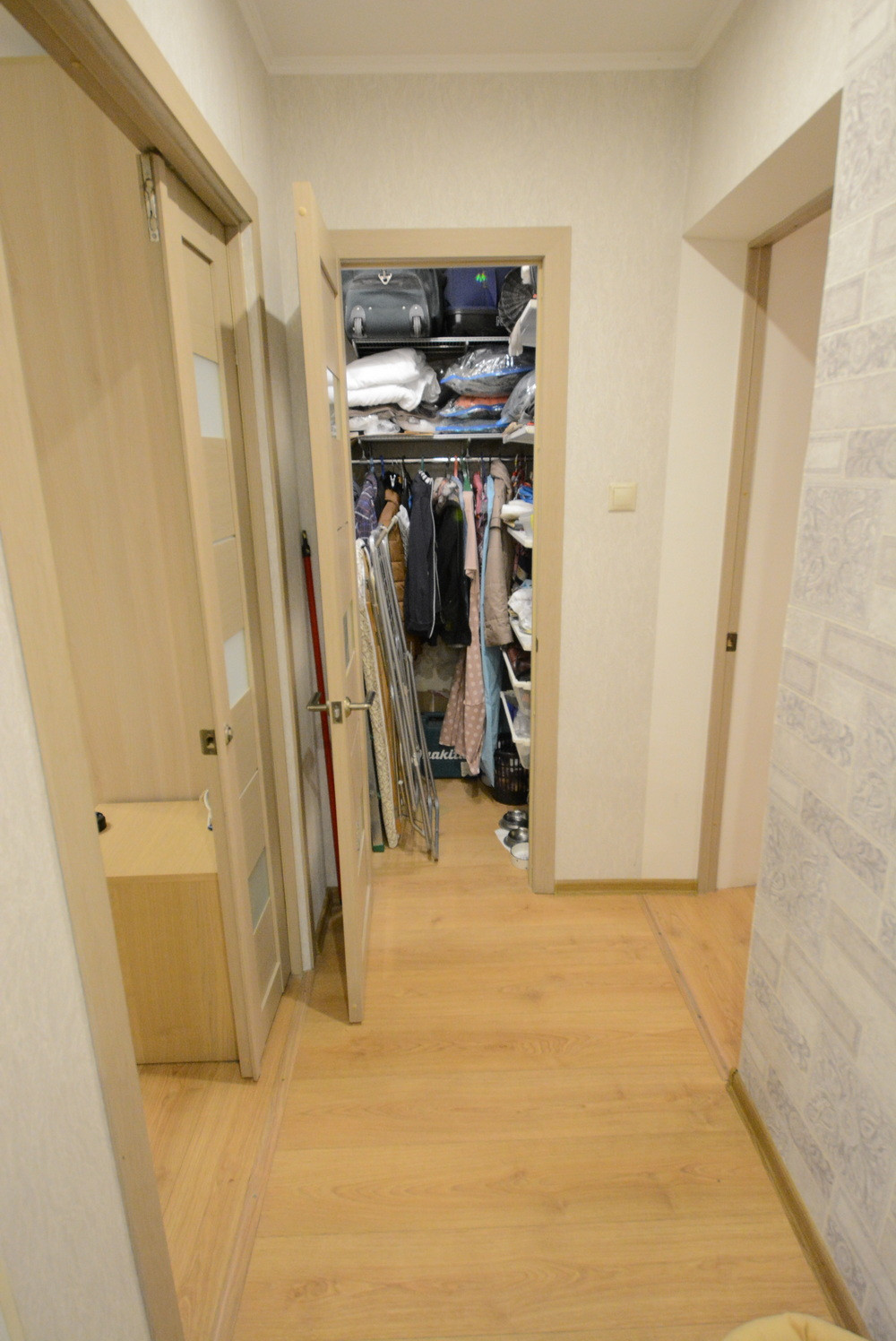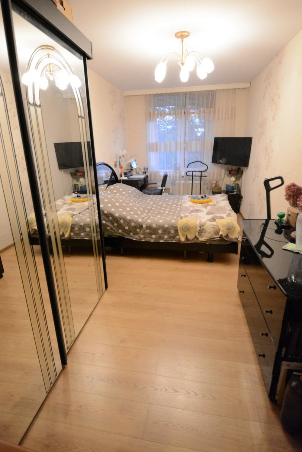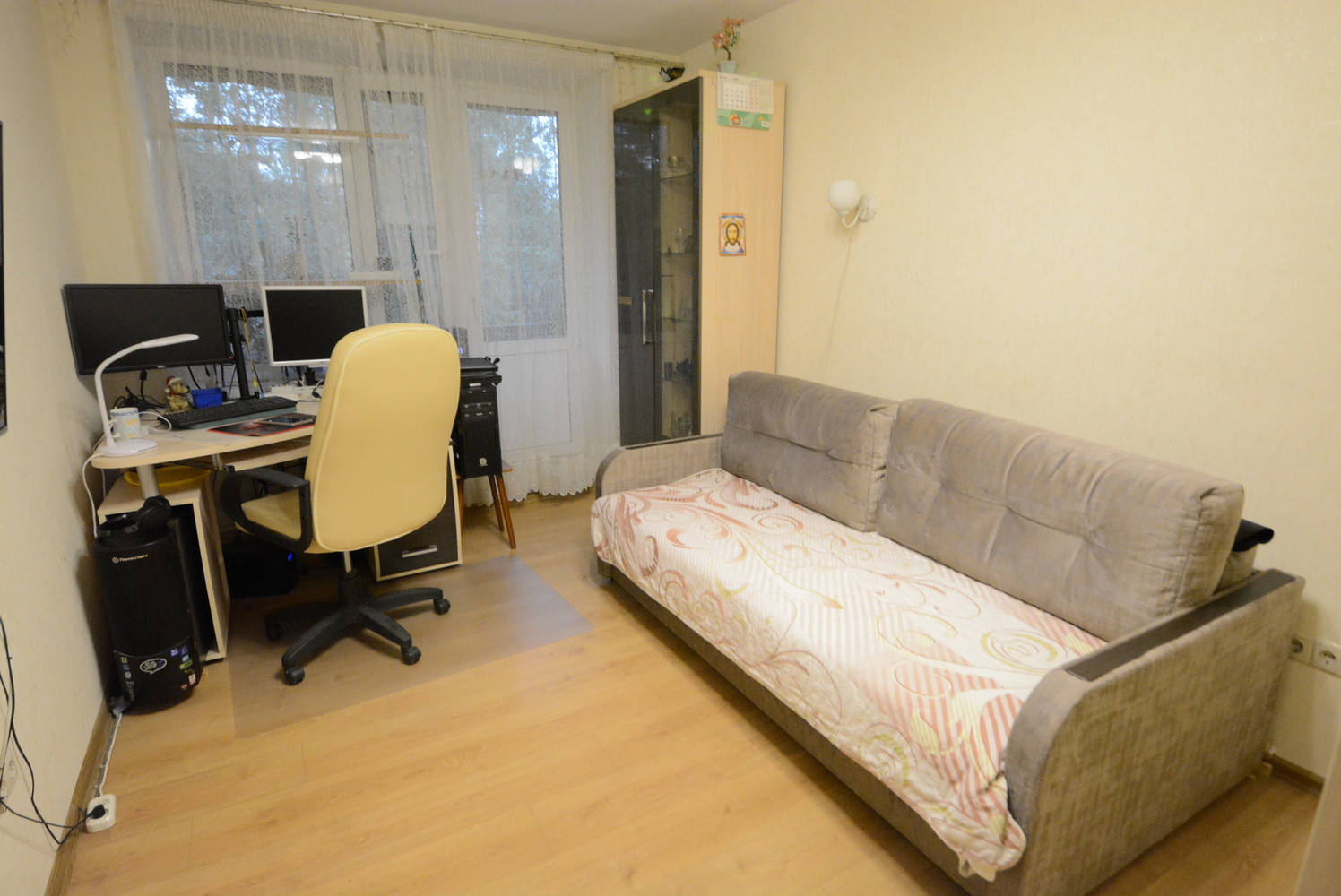 Общ. площадь 58м, без учета балкона 56.5м, комнаты раздельные, есть гардеробная, балкон. Старые окна все заменены на стеклопакеты. Окна выходят на обе стороны дома. Санузел раздельный. Ремонту с полной заменой проводки 5 лет. Окна во двор (дороги не слышно).