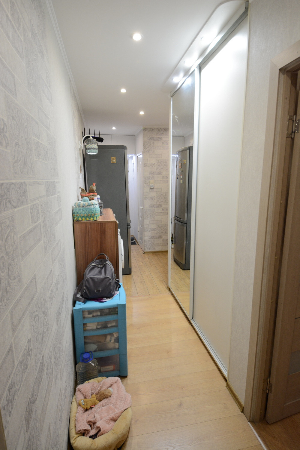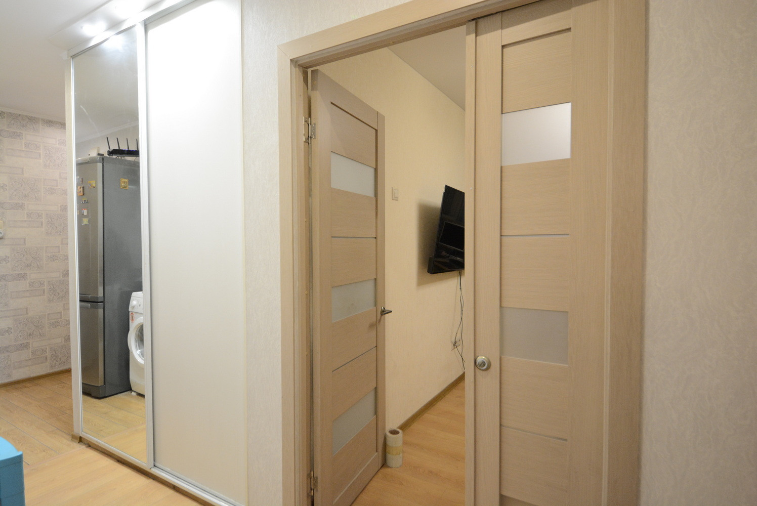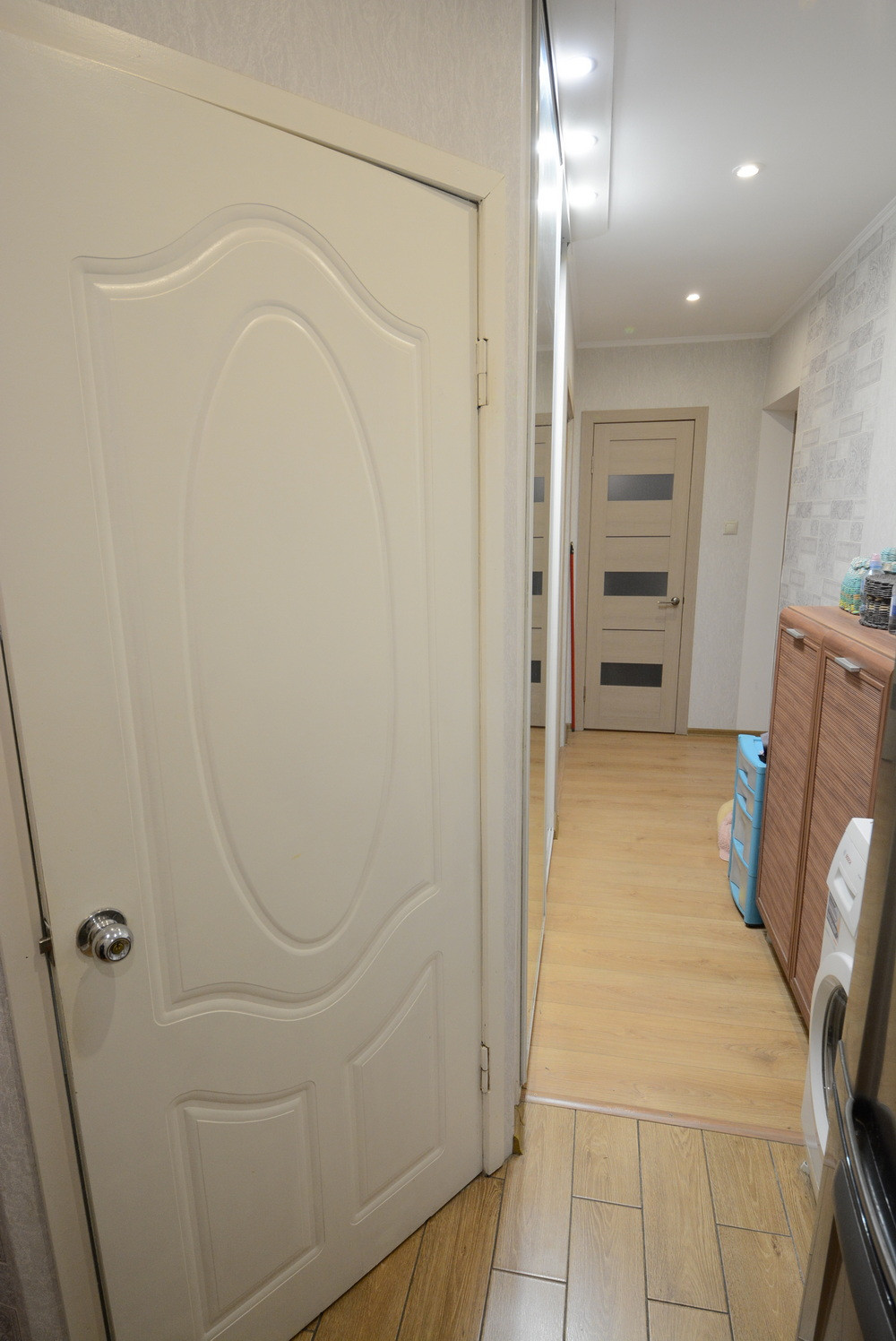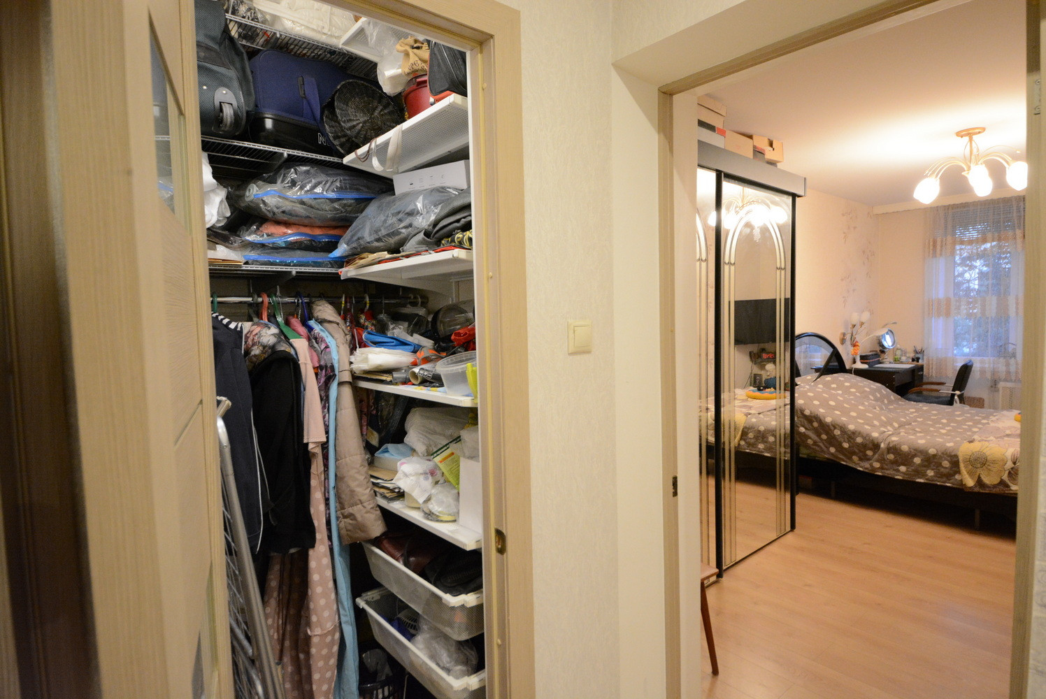 Общ. площадь 58м, без учета балкона 56.5м, комнаты раздельные, есть гардеробная, балкон. Старые окна все заменены на стеклопакеты. Окна выходят на обе стороны дома. Санузел раздельный. Ремонту с полной заменой проводки 5 лет. Окна во двор (дороги не слышно).
