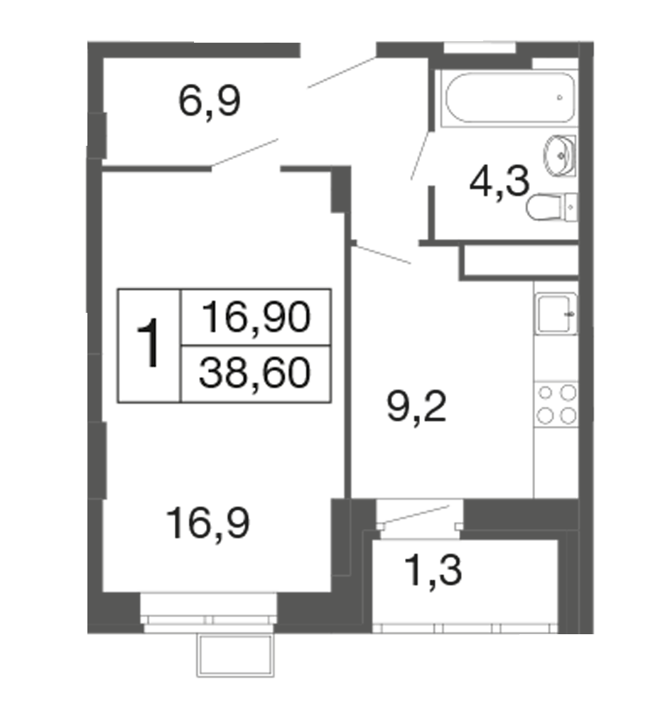 Балкон, лоджия 1 балкон
