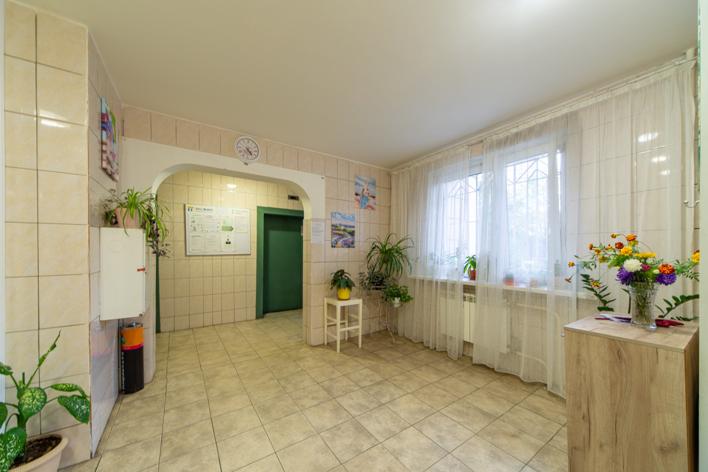 Современный дом, всего четыре квартиры на этаже, три лифта, консьерж, уютная входная группа.