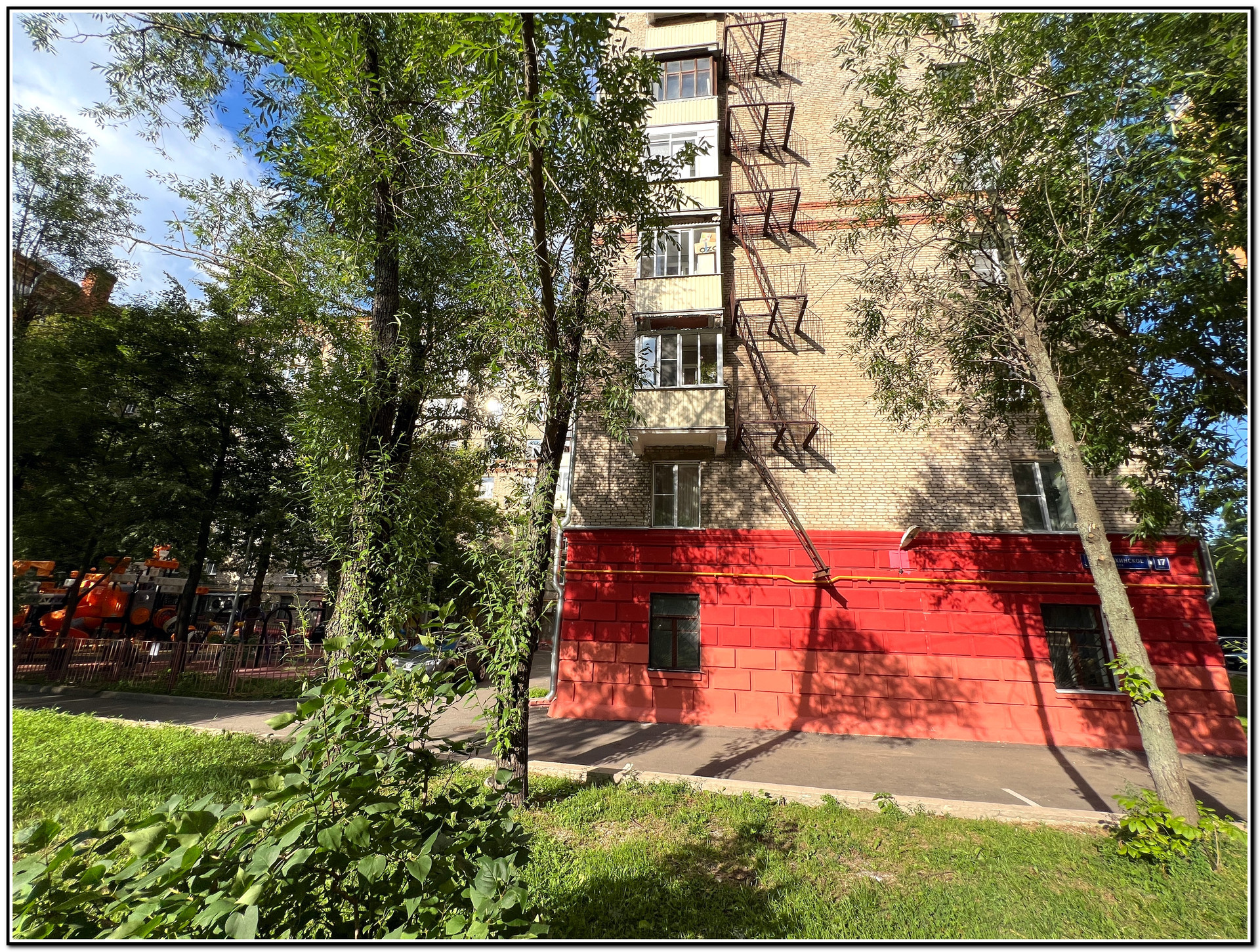 Окружение дома создаёт приятную атмосферу для жизни. Во дворе расположена детская площадка, где ваши дети смогут безопасно играть и проводить время на свежем воздухе.