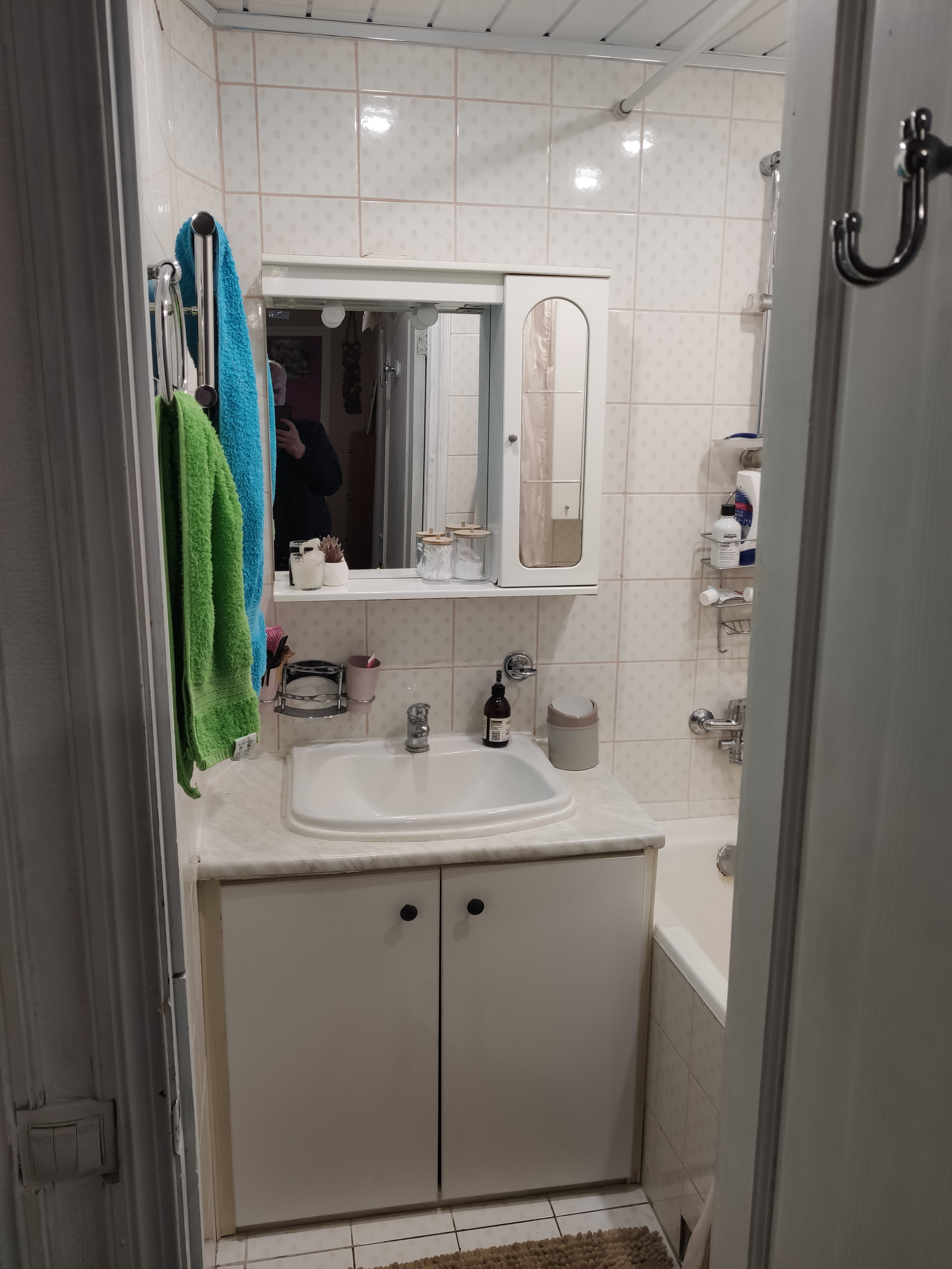 5. В ванной установлены два шкафчика. Один с подсветкой и розеткой.