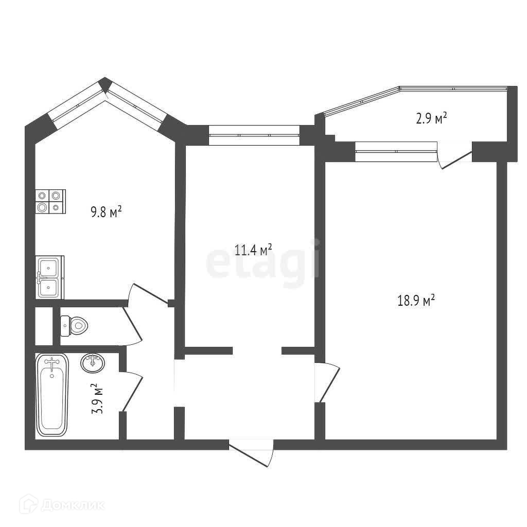 Общая площадь 54.9 м2