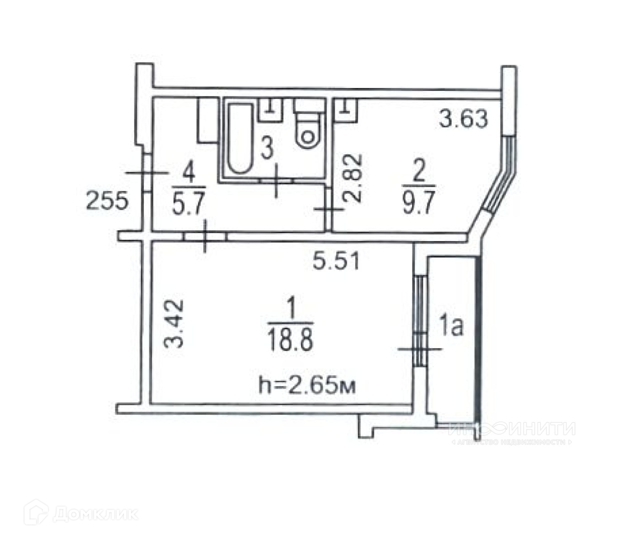 Общая площадь 37.6 м2