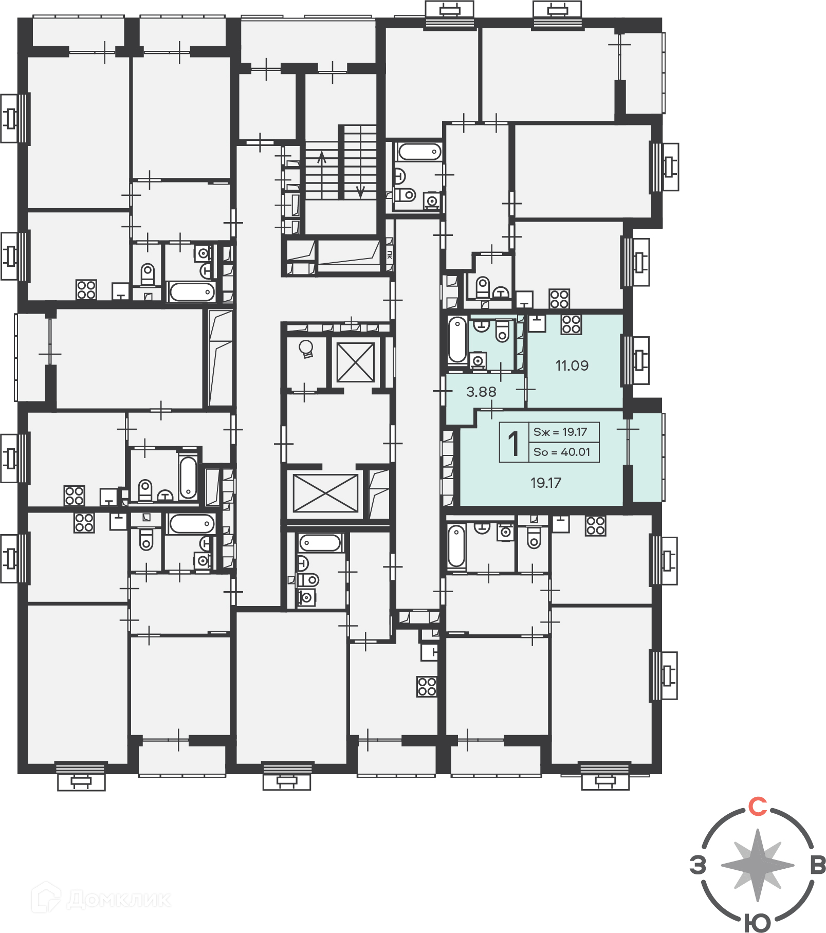 1-комнатная квартира, 40.01 м2, этаж 9 / 19, на продажу в Москве, 4-й проезд Марьиной Рощи