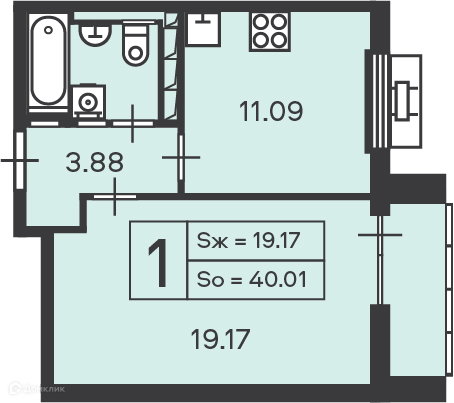 Общая площадь 40.01 м2