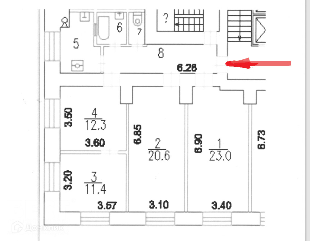 Комнаты правильной формы, удобной планировки. 23,0 (изол), 20,6 (изол), 12,3+11,4 (смежные). Есть варианты перепланировки с объединением смежных комнат или увеличением кухни.