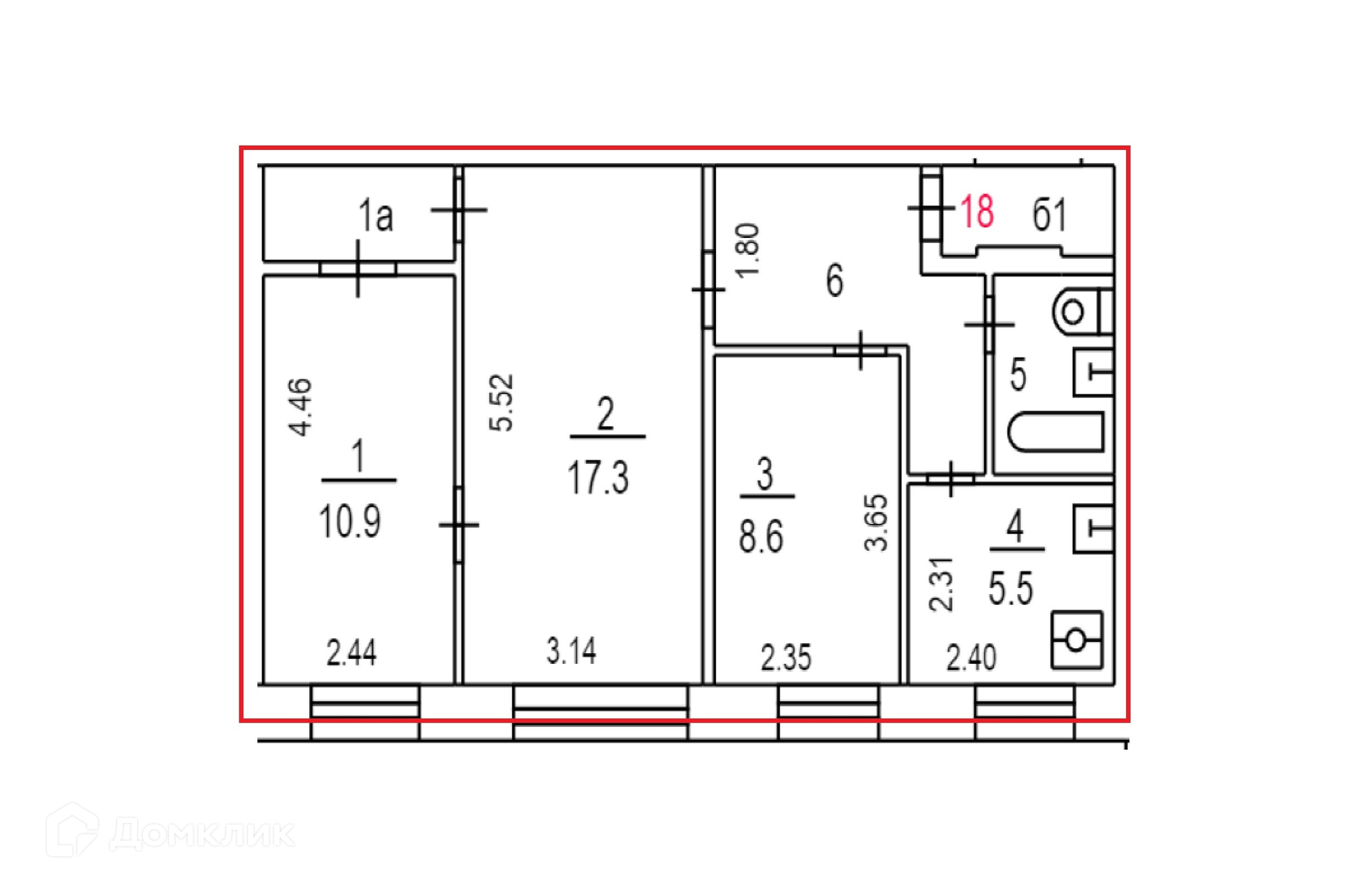 Общая площадь 53.2 м2