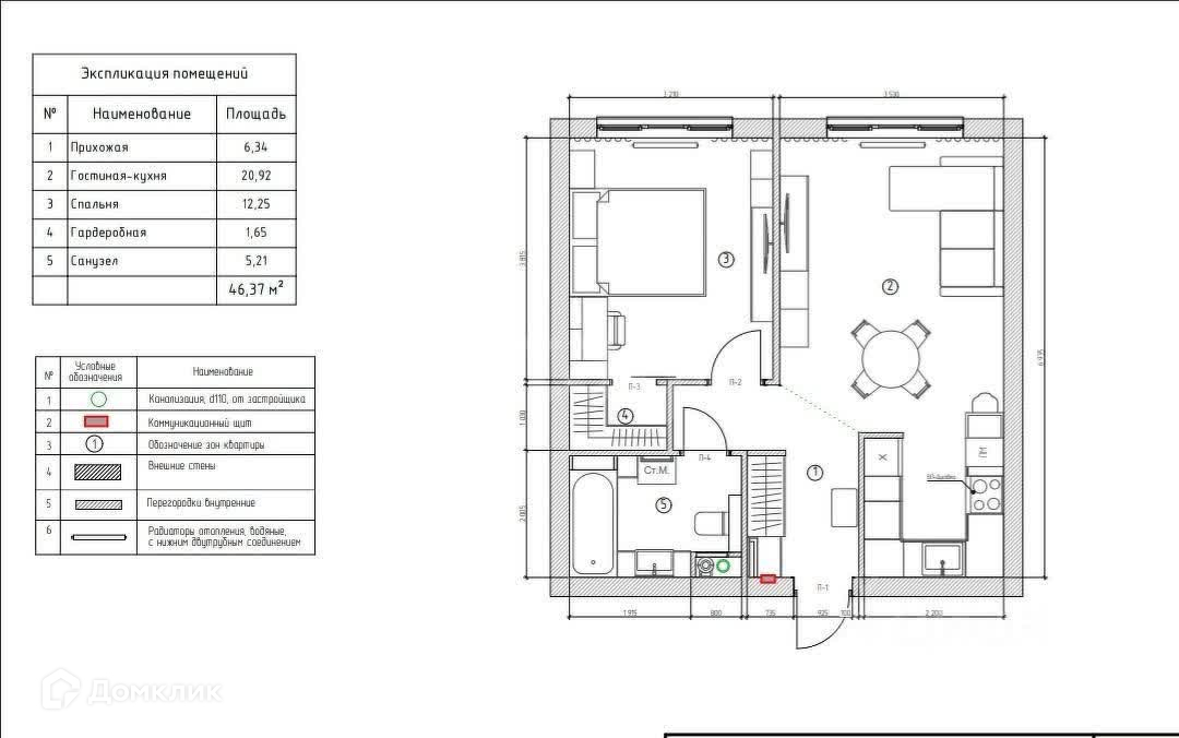 Общая площадь 46.5 м2