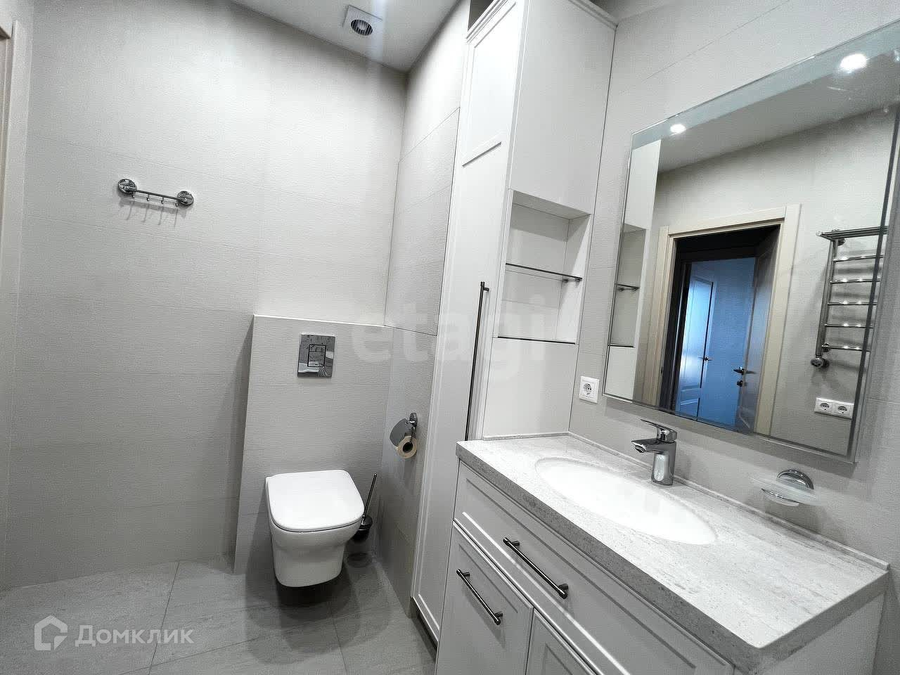 В ванной комнате установлен накопительный электронагреватель, ванна, унитаз и электрический полотенцесушитель. Также предусмотрены аксессуары. Комплект мебели, включая тумбу с раковиной и колонку, изготавливается по индивидуальному проекту и будет установлена в ближайшее время. В квартире установлены межкомнатные двери, а входная дверь — премиум-качества от компании Torex.