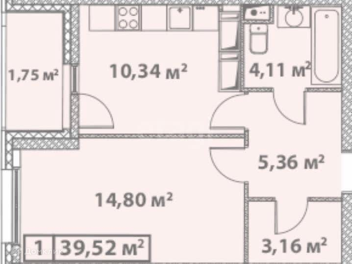 кухня 10, 34 м2 с выходом на застекленную лоджию 1,75 м2
