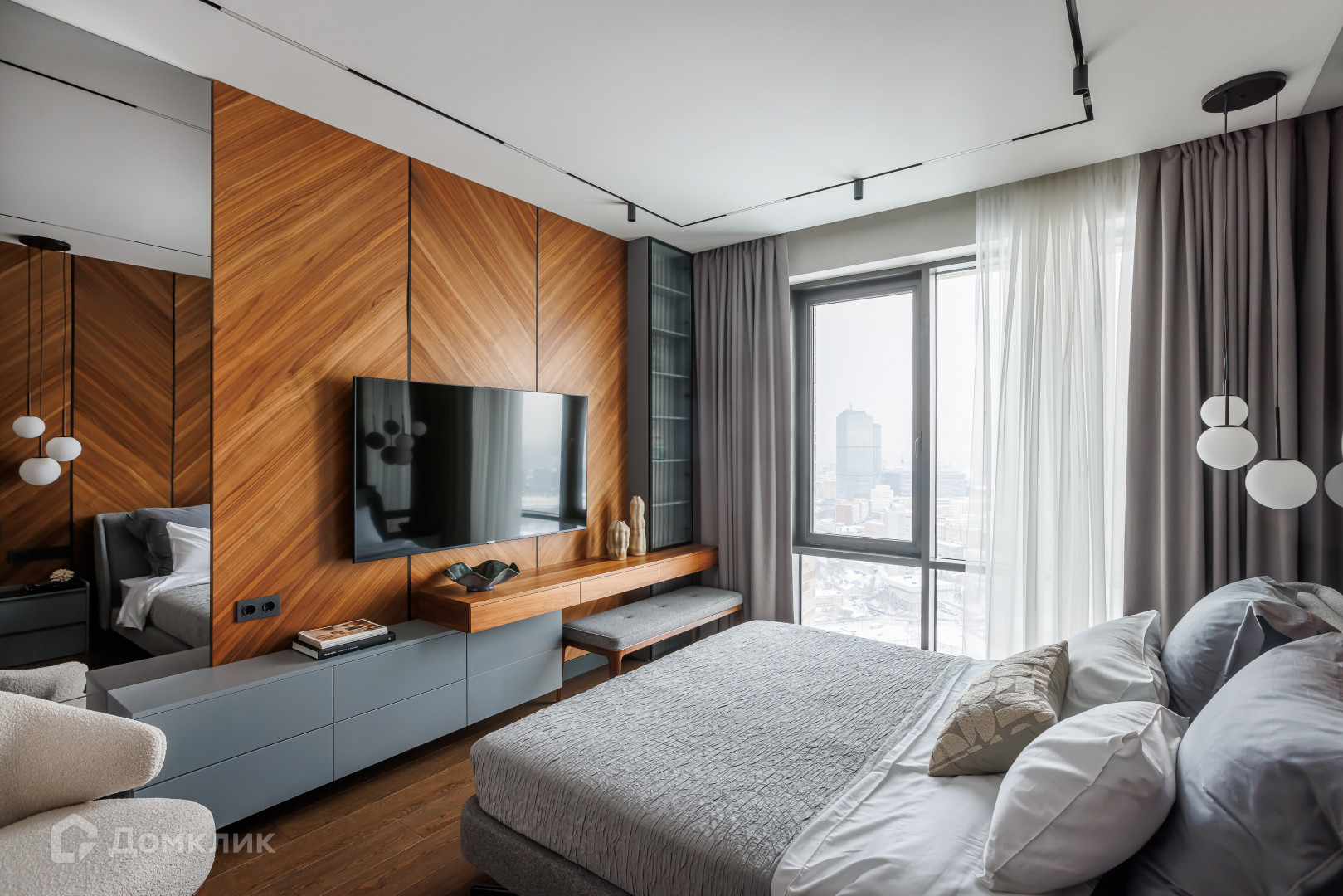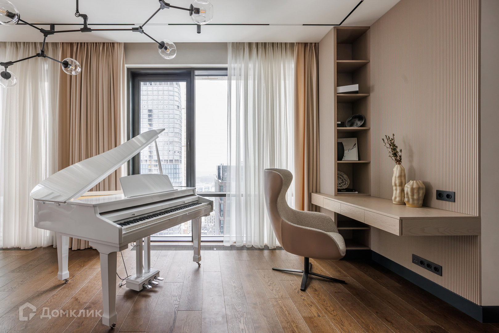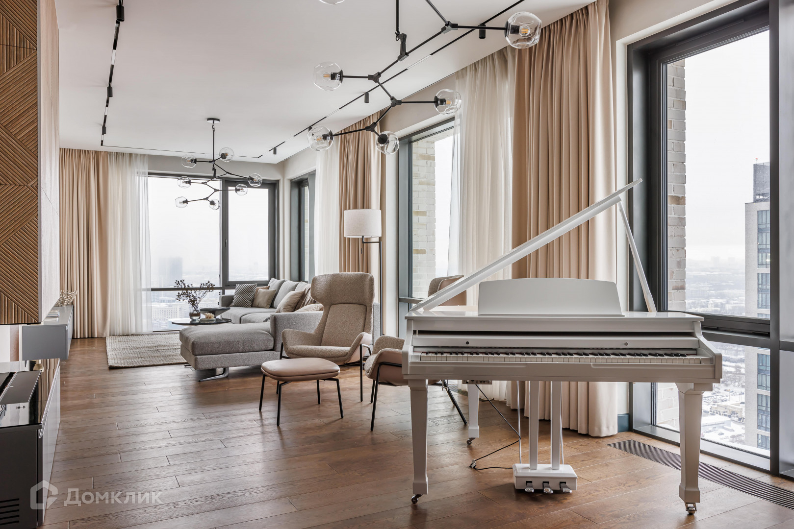 Окна выходят на две стороны с потрясающими видами на Мoсквa-Сити и Поклoнную гору.