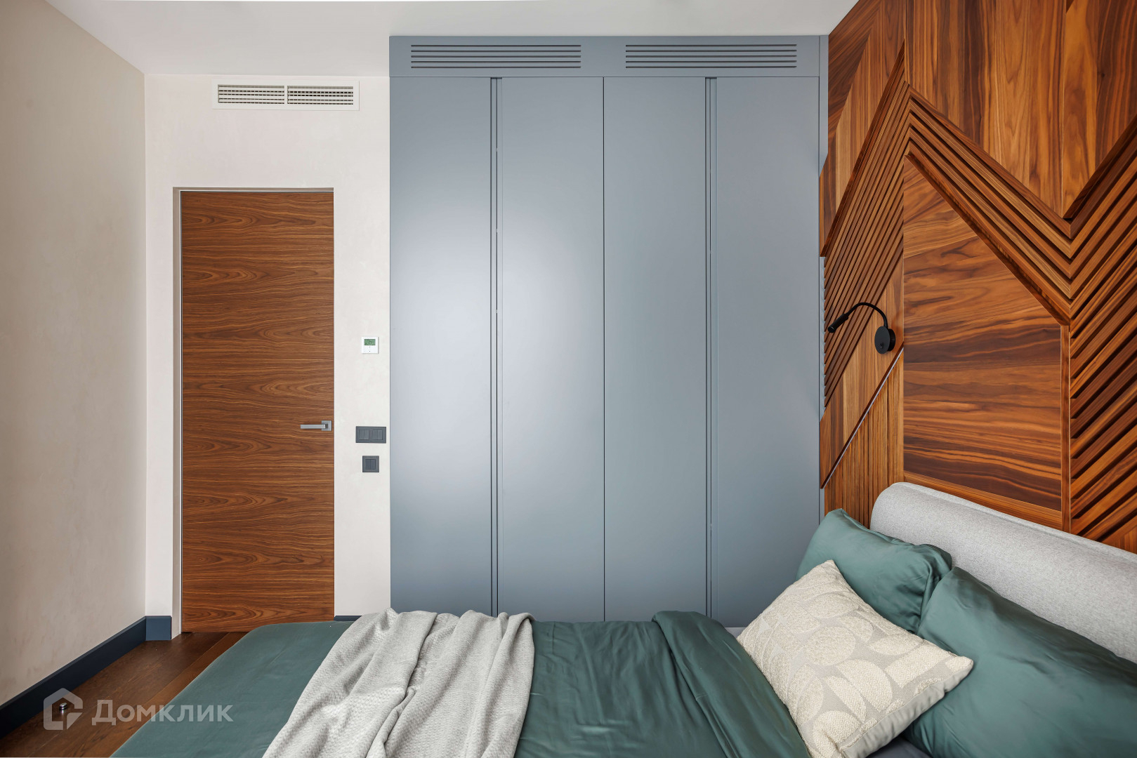 Все жилые комнаты визуально объединены напольным покрытием. На полу - инженерная доска Аrtе Тесh торговой марки FiNЕХ.